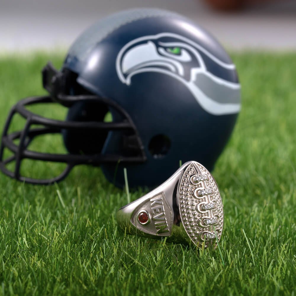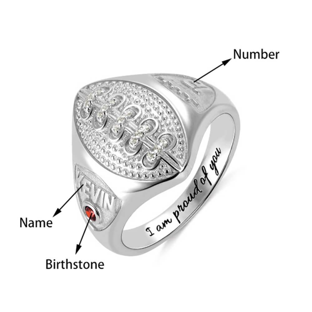 -Tämä Callien sormus on kaiverrettu jalkapallon erottuvalla kuviolla, kun taas kaksi puolta voidaan personoida nimellä, syntymäkivellä ja joukkueesi numerolla. Koristeltu kimaltelevilla kristalleilla, jalkapallolla on korkea herkkä ulkonäkö.