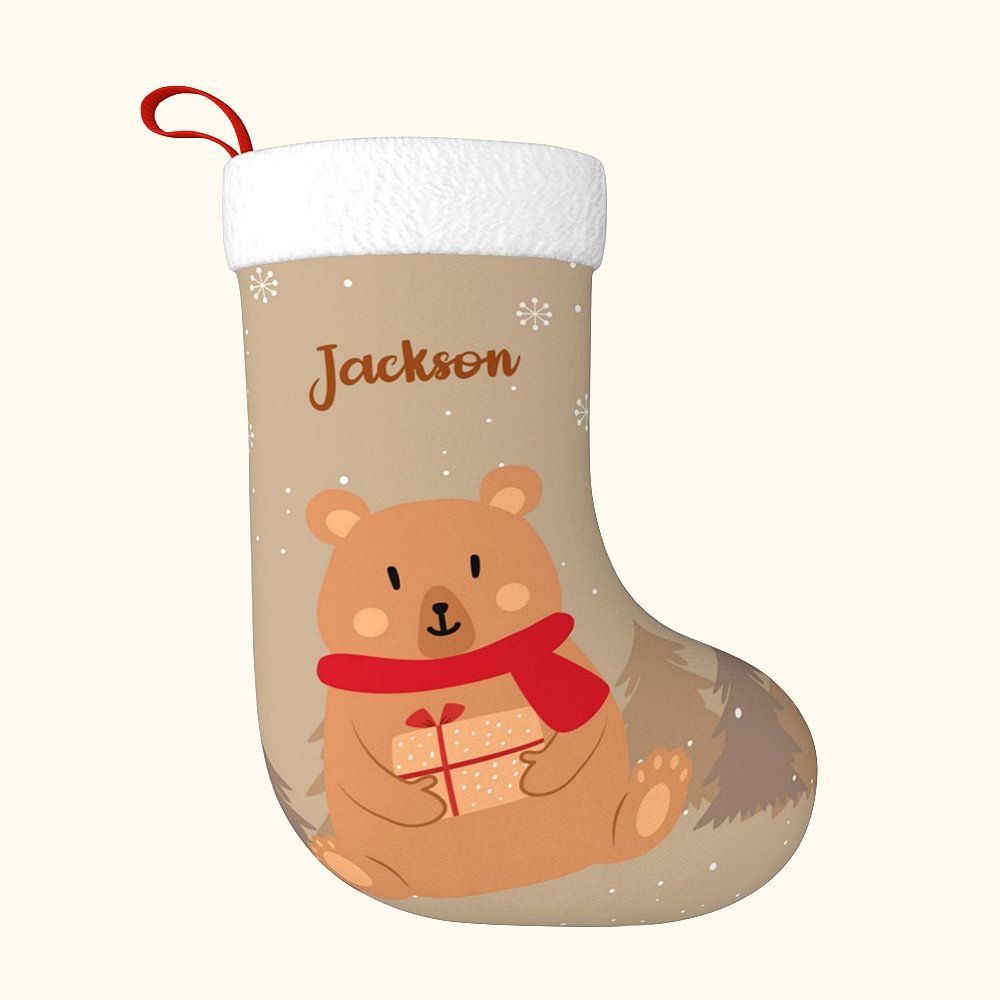 This Christmas stocking is printed with cute bears, small snowflakes, and Christmas tree patterns. You can add your name to the Christmas stockings and decorate it with it to add a joyful holiday atmosphere and make it a personalized and warm gift.