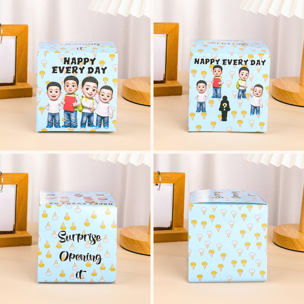 Tämä sokea laatikkomalli tarjoaa ainutlaatuisen räätälöintipalvelun! Lataa 4-6 valokuvaa, ja tekoäly luo automaattisesti söpön sarjakuvaversion. Voit valita mallin itse (myös piilotetut versiot) tai valita satunnaisen mallin yllätykseksi. Voit räätälöidä yhden itsellesi, antaa sen yllätyksenä jollekulle tai luoda hauskan lahjan.