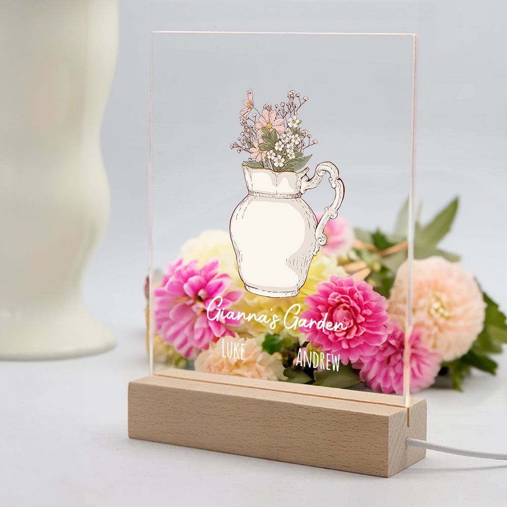 Etsitkö poikkeuksellista syntymäpäivä- tai perhelahjaa äidillesi tai isoäidillesi? Älä epäröi enää! Tämä akryylikyltti on täydellinen valinta. Siinä yhdistyvät persoonallisen suunnittelun viehätys, LED-sateenkaarivalojen viehätys ja luonnon kauneus. Tämä on lahja, jota vaalitaan ja arvostetaan, ja se muistuttaa heitä rakkaudestasi ja arvostuksestasi joka kerta, kun he näkevät sen.