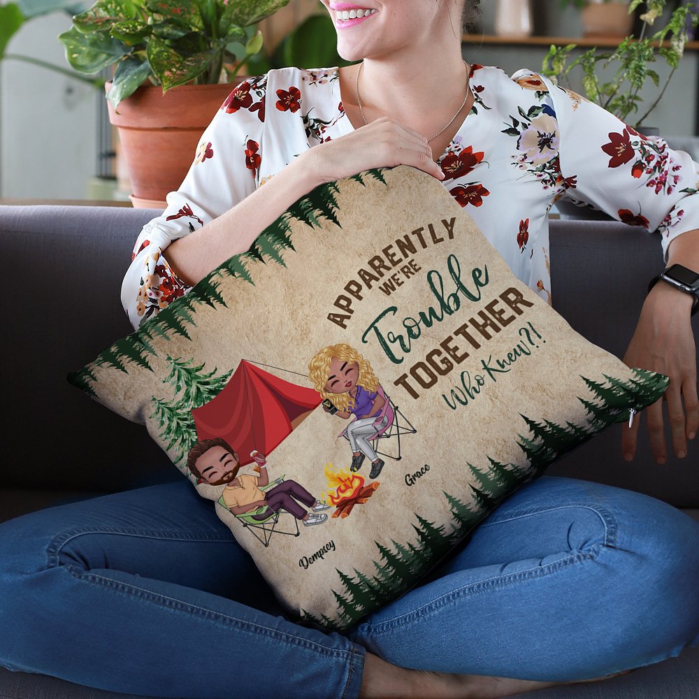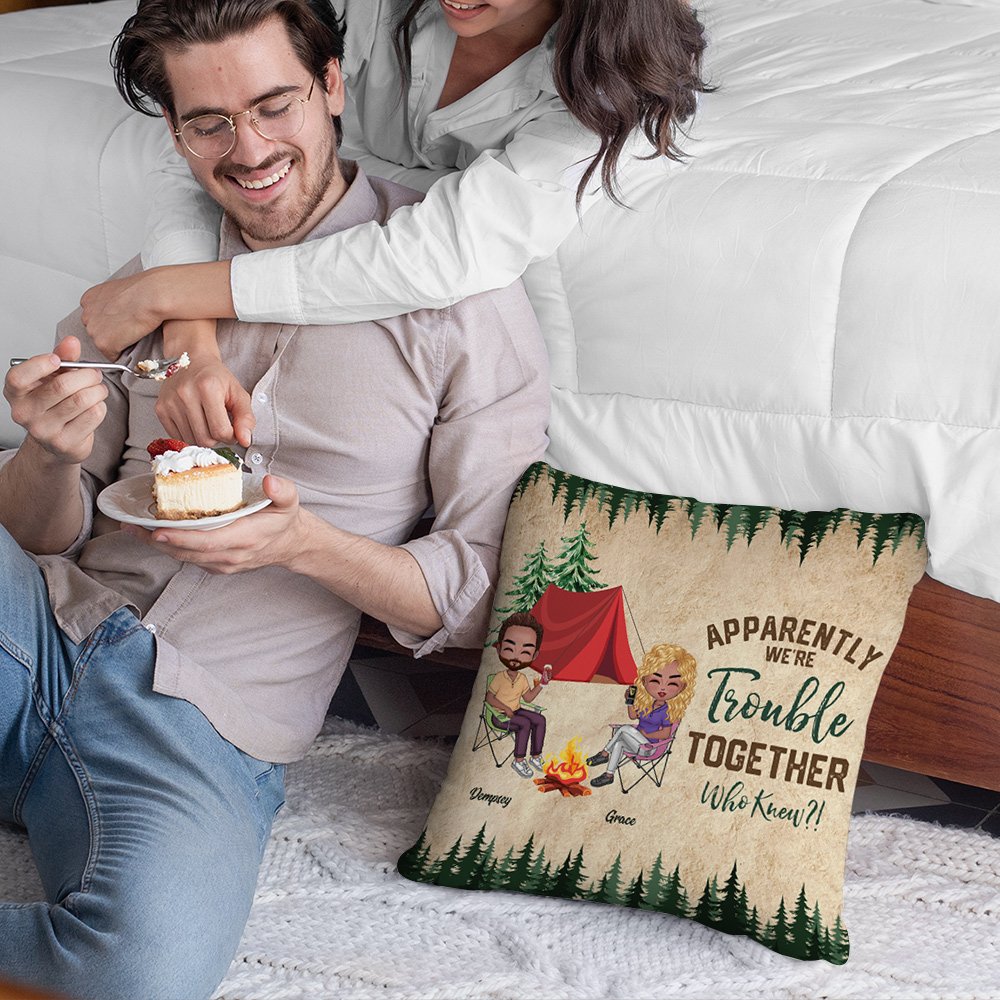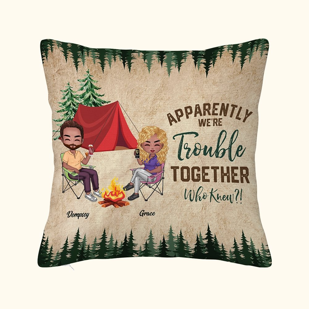 Henkilökohtainen Ilmeisesti olemme ongelmia yhdessä Kuka tiesi heittää tyynyn kansi Camping lahja pariskunnalle Kodin sisustus
