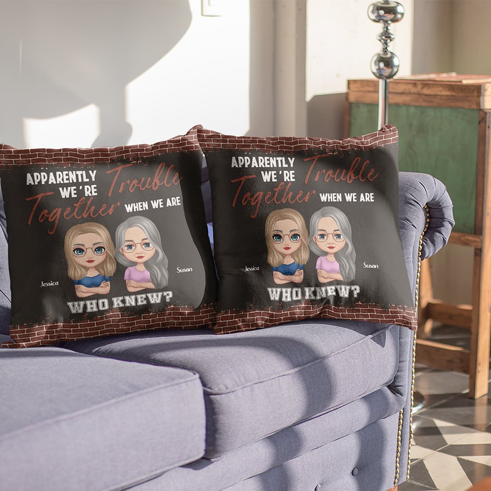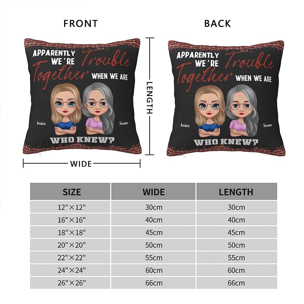 This unique throw pillow cover is a personalized expression of friendship between besties and close female friends. It allows young and older women to convey their friendly and intimate emotions in a customized manner.