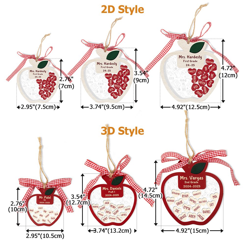 Tämä koriste on valmistettu pulleasta omenasta, jota korostaa punavalkoinen ruudullinen rusetti, ja se kuvastaa elävästi juhlallista tunnelmaa. Koristeeseen voidaan lisätä oppilaan nimi, opettajan titteli, luokka-aste ja vuosi, ja se tekee opettajan ja oppilaan välisestä siteestä arvokkaan muistoesineen.