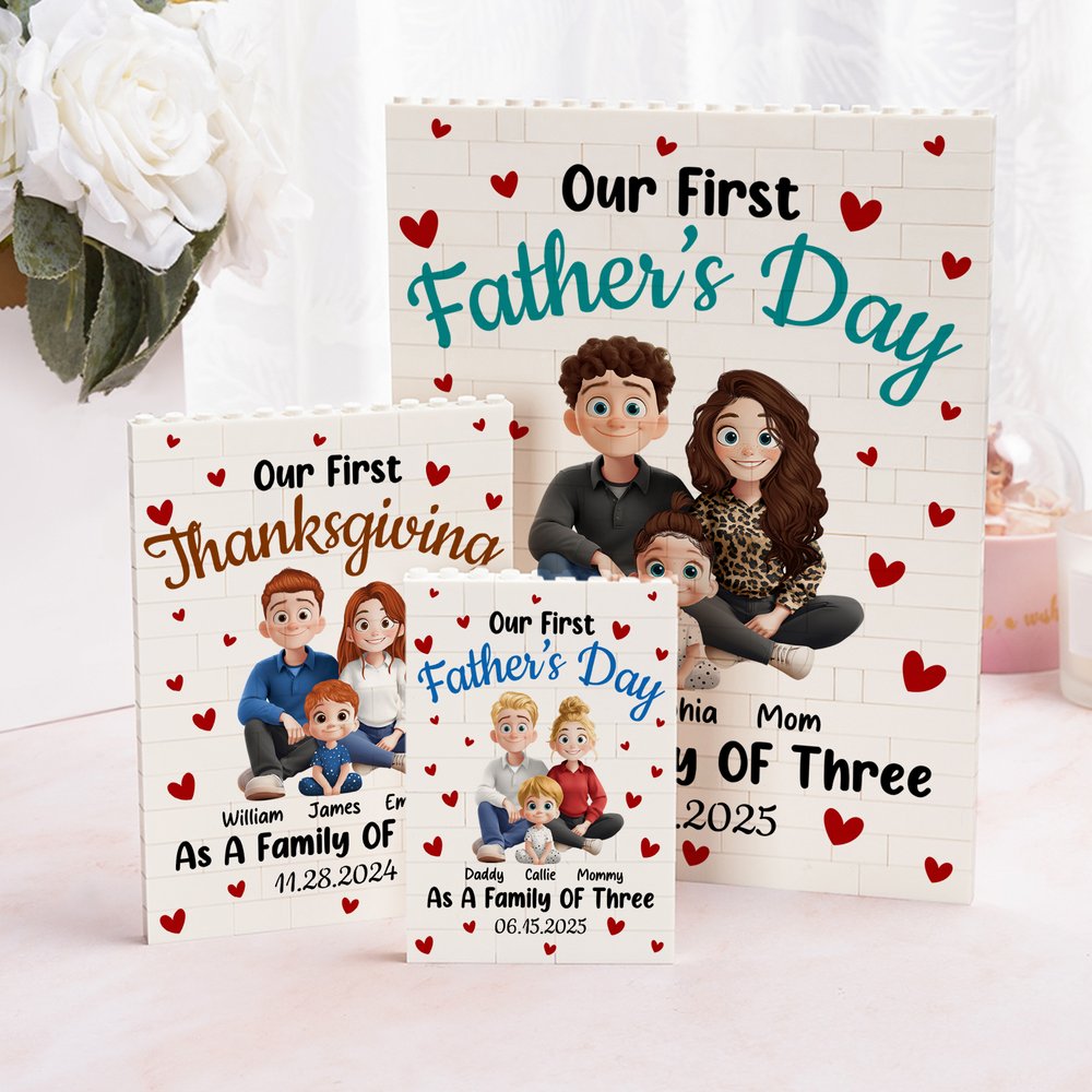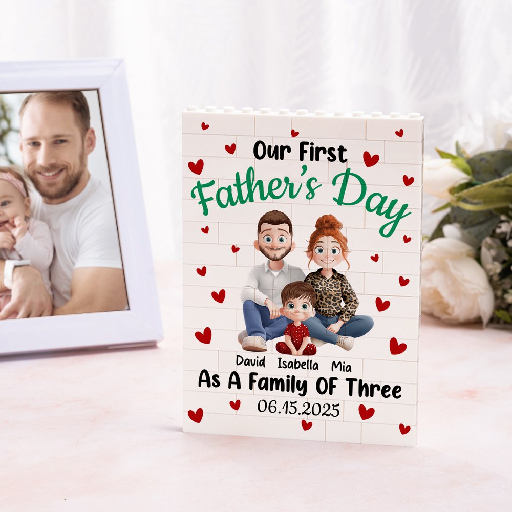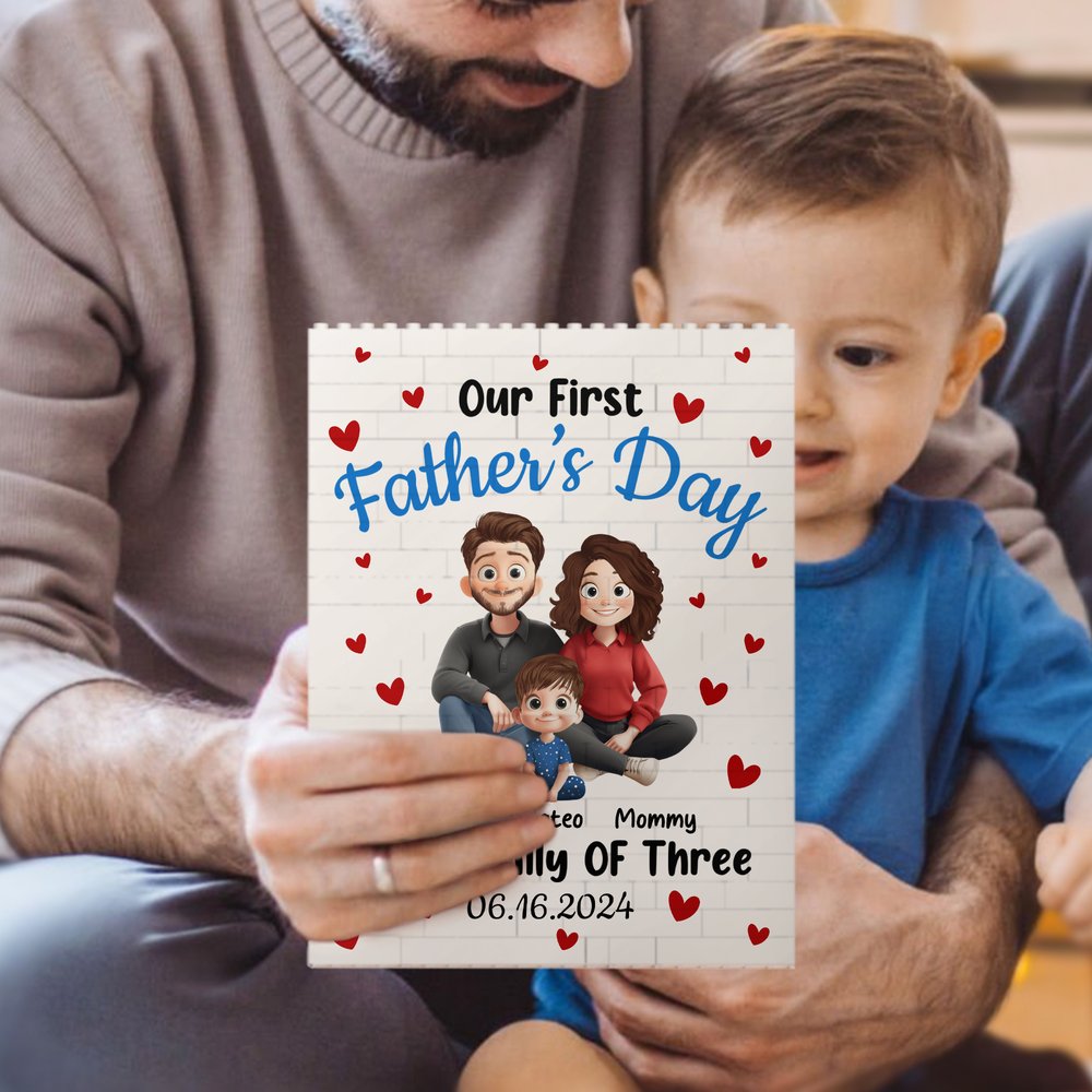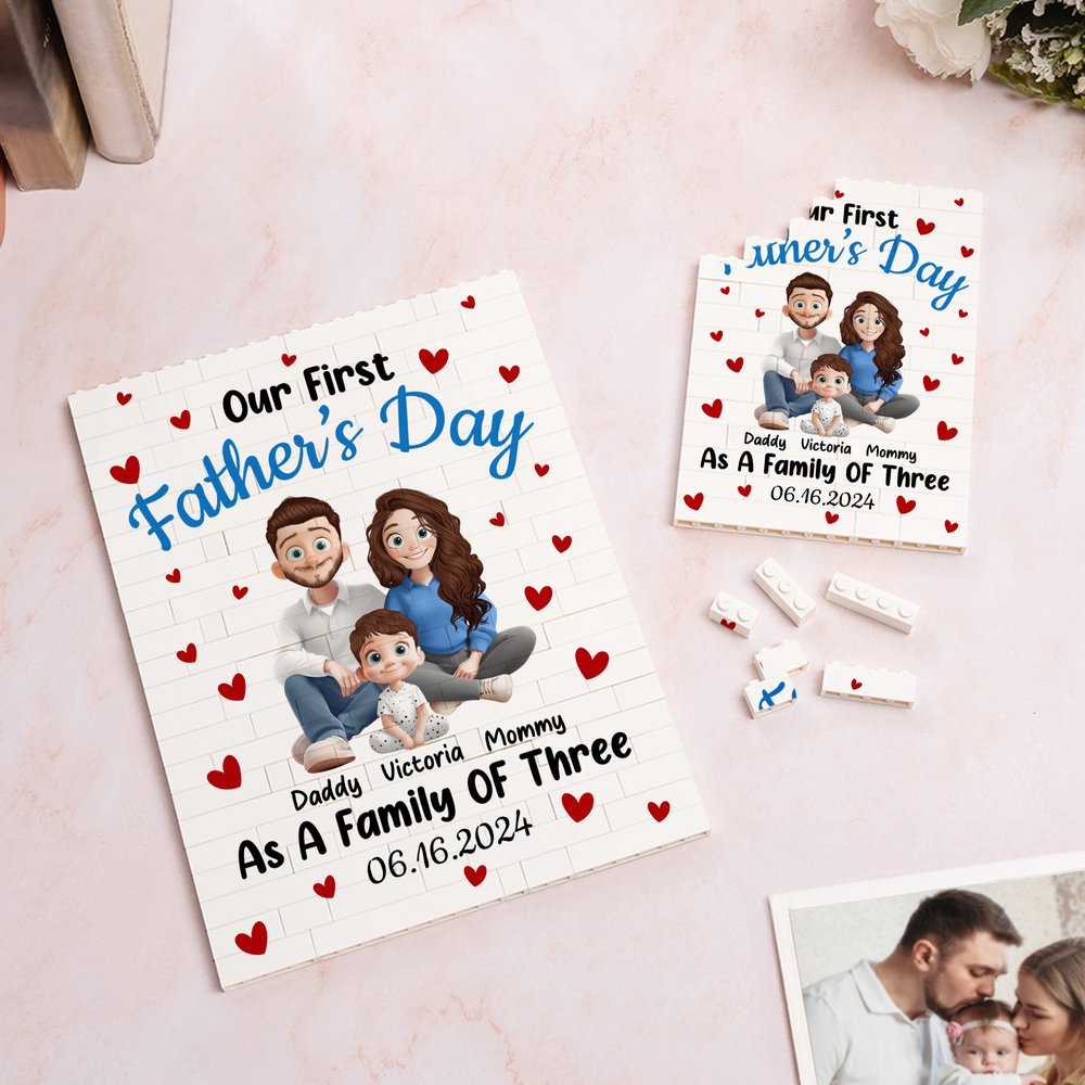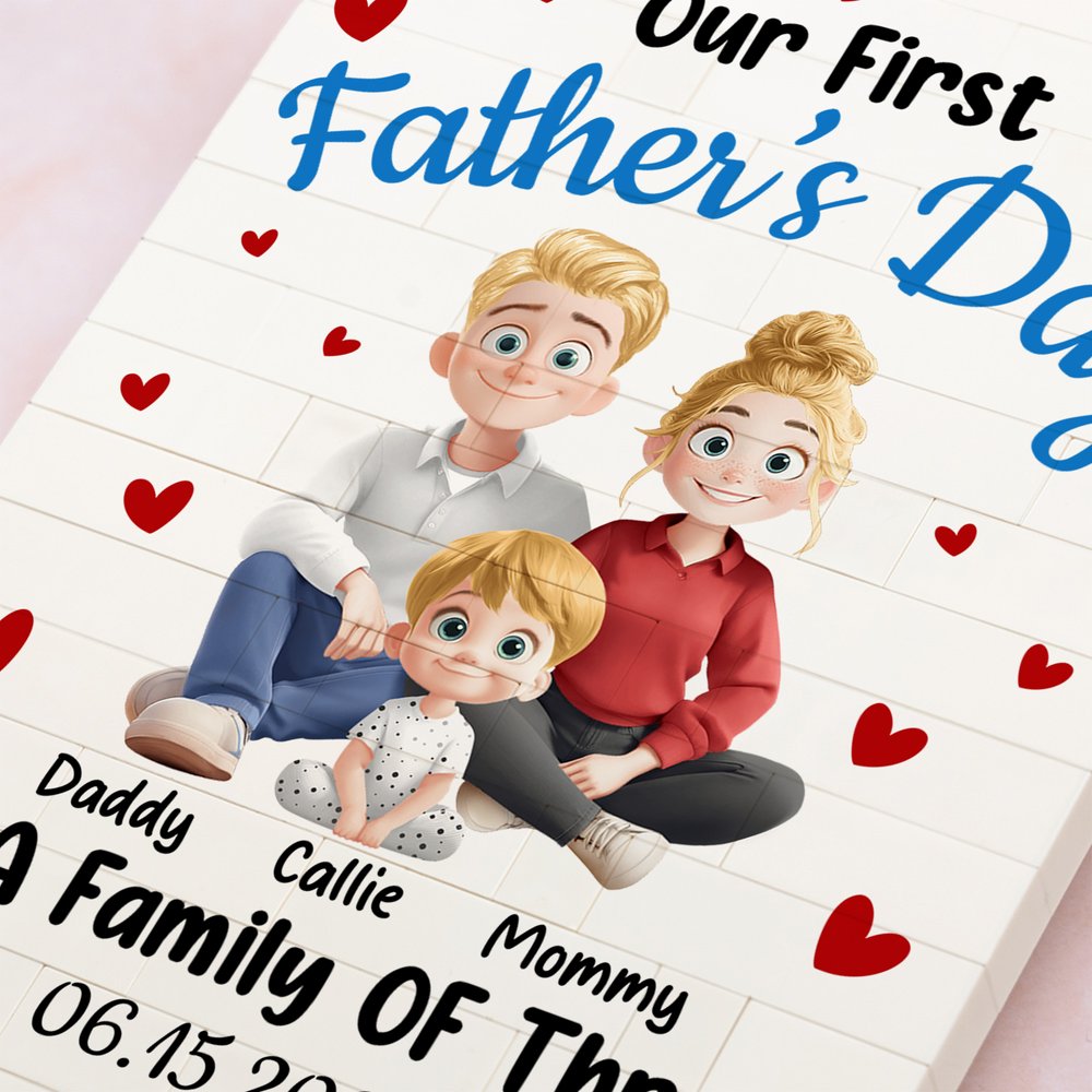 Tämä tiilipalapeli on suunniteltu isänpäivän teemalla, ja se on painettu räätälöidyillä perhesarjan 3D-sarjakuvahahmojen kuvilla, jotka esittävät elävästi lämminhenkisen kohtauksen kolmihenkisestä perheestä. Voit myös mukauttaa kiinteän tekstin "Ensimmäinen isänpäivämme" tai antaa räätälöidyn kopion isän ensimmäisen vuoden muistoksi. Lisäksi voit mukauttaa isän, äidin ja vauvan nimet sekä vauvan syntymävuoden, joka on hyvin muistettava.
