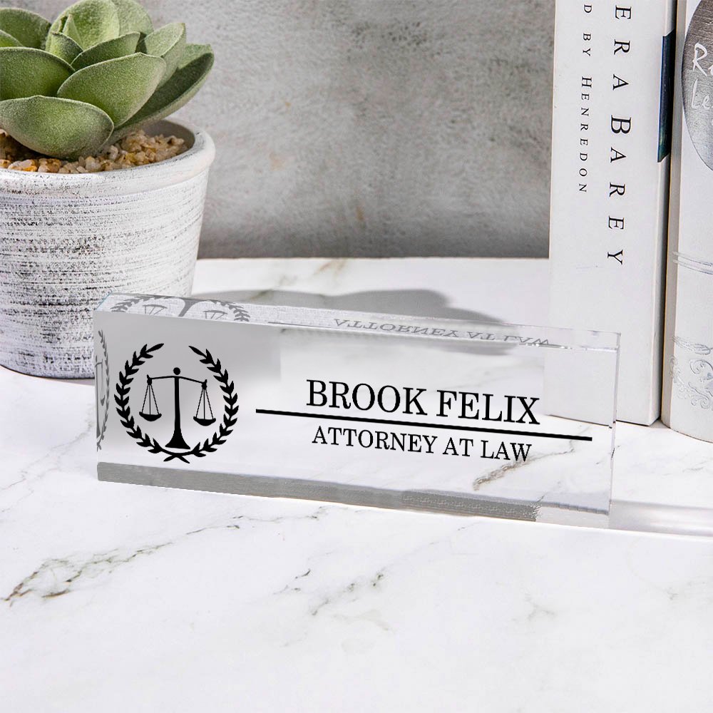 Tämä nimikyltti sopii harkituksi lahjaksi asianajajille, tuomareille, lainopin opiskelijoille tai lakimiesammatissa toimiville ystäville. Olipa kyseessä ylennyksen, valmistumisen tai erityisen saavutuksen juhlistaminen, tämä lahja välittää huolenpitosi ja parhaat toiveesi ja ilmaisee kunnioitusta ja ihailua lakimiesammattia kohtaan.