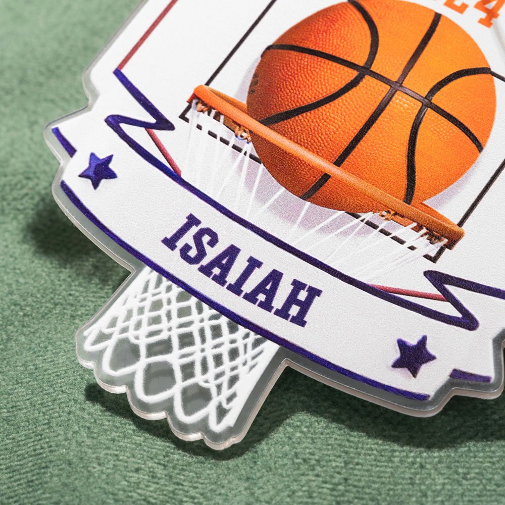 Tämä koriste on suunniteltu teemalla "Koripalloilun elinvoimainen hetki", ja siinä on koripallokehys ja koripallo päärungossa. Se voidaan räätälöidä nimillä ja muistovuosilla käyttäen voimakkaita urheilufontteja, jotka heijastavat koripalloelementtejä. Yläosa on yhdistetty kultaiseen kaulanauhaan, joka säilyttää koristeen kevyen ja ketterän luonteen ja antaa sille samalla yksinoikeuden tunteen.
