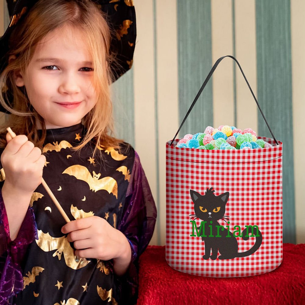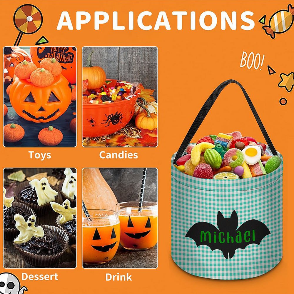 You can choose from four cute patterns: black cat, bat, pumpkin, and ghost, and customize your name on the bag according to your preferences. In addition, there are 9 different colors and 4 fonts to choose from, making this candy bag more personalized and perfect for different Halloween themes. Whether a Halloween party or a school event, it is an ideal choice to convey joy and surprise.