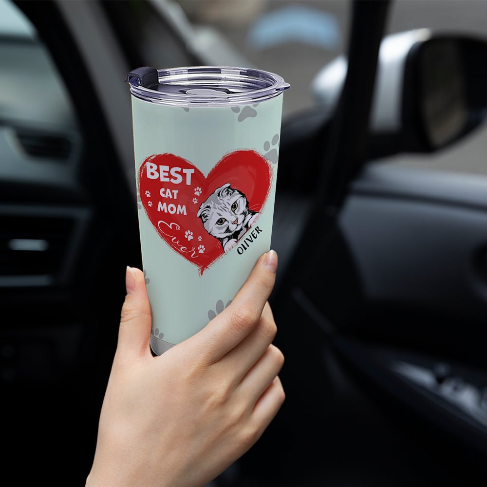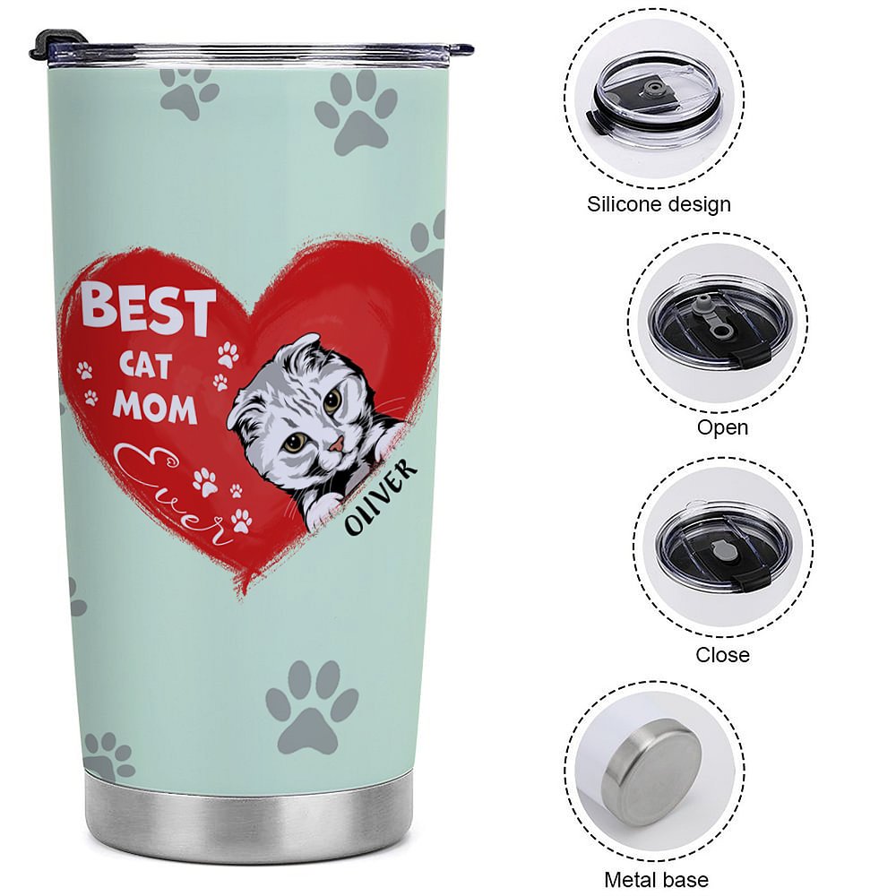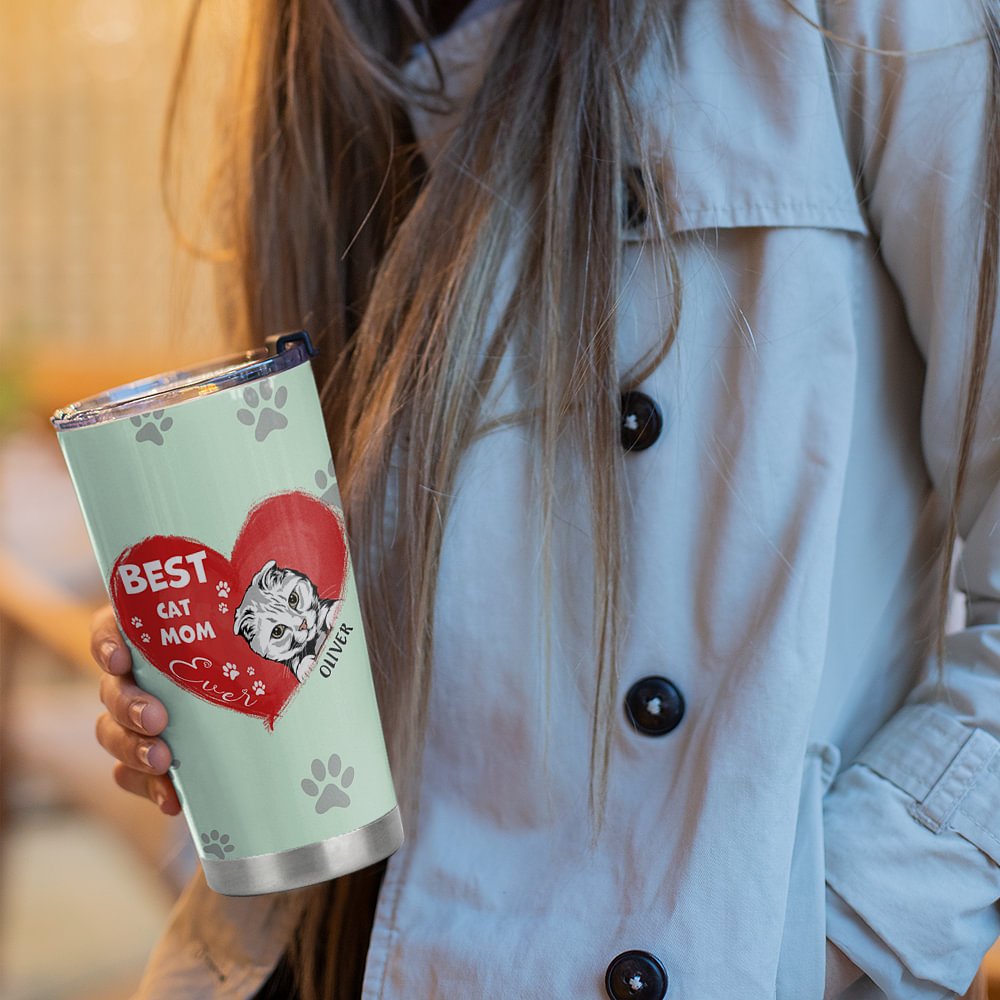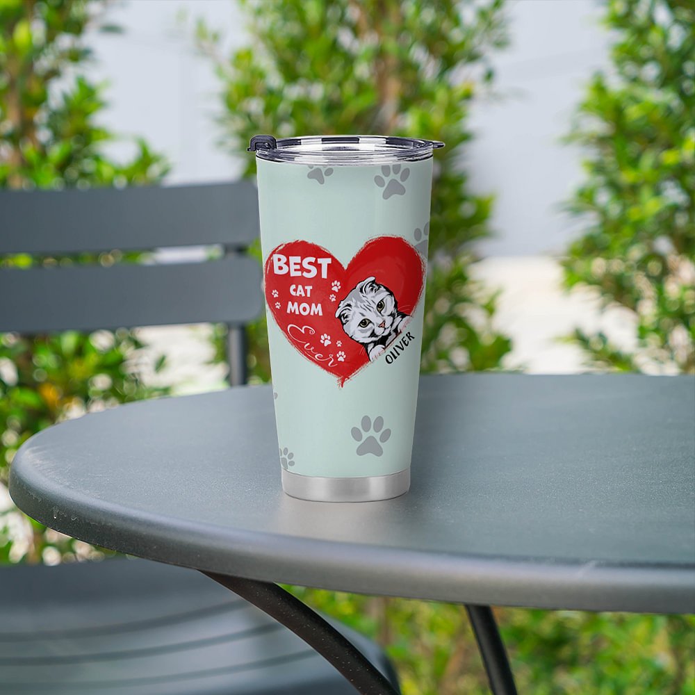 Henkilökohtainen Best Cat Mom Heart Pet Paw Print 20oz Tumbler nimi Tumbler kansi syntymäpäivälahja lemmikkieläinten ystävälle