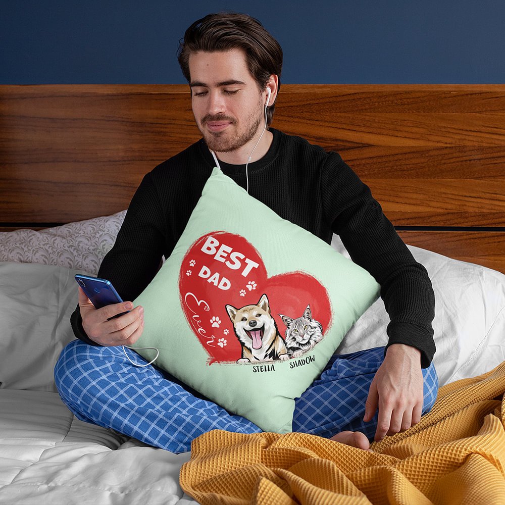 This throw pillow cover is the perfect gift for any pet lover. With its red heart-shaped design, and the phrase "Best Dad Ever," it is a unique and personalized product. You can customize 1-3 pet breeds and names, which allows you to express your love for your furry friends in a special visible way.