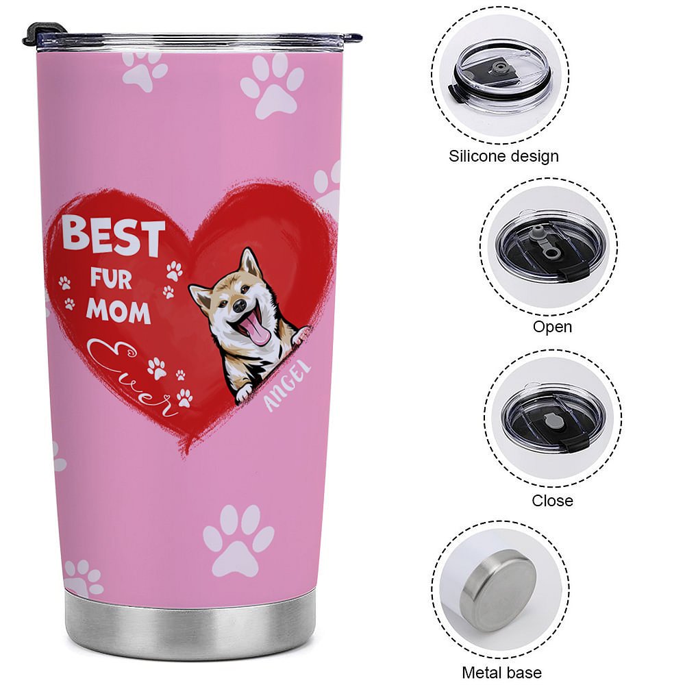 Henkilökohtainen Best Fur Mom Heart Pet Paw Print 20oz Tumbler Nimi Tumbler kannella Syntymäpäivälahja lemmikkieläinten ystävälle
