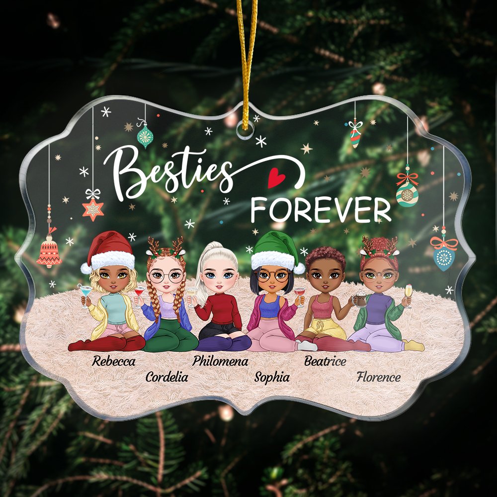 The centerpiece of this stunning ornament is a heartfelt quote, "Besties Forever", beautifully printed on the front. This phrase symbolizes the unbreakable bond you share with your best friend, reminding them of the countless memories and adventures you've experienced side by side. Every time they glance at this ornament, they'll be reminded of the cherished moments that have shaped their friendship.