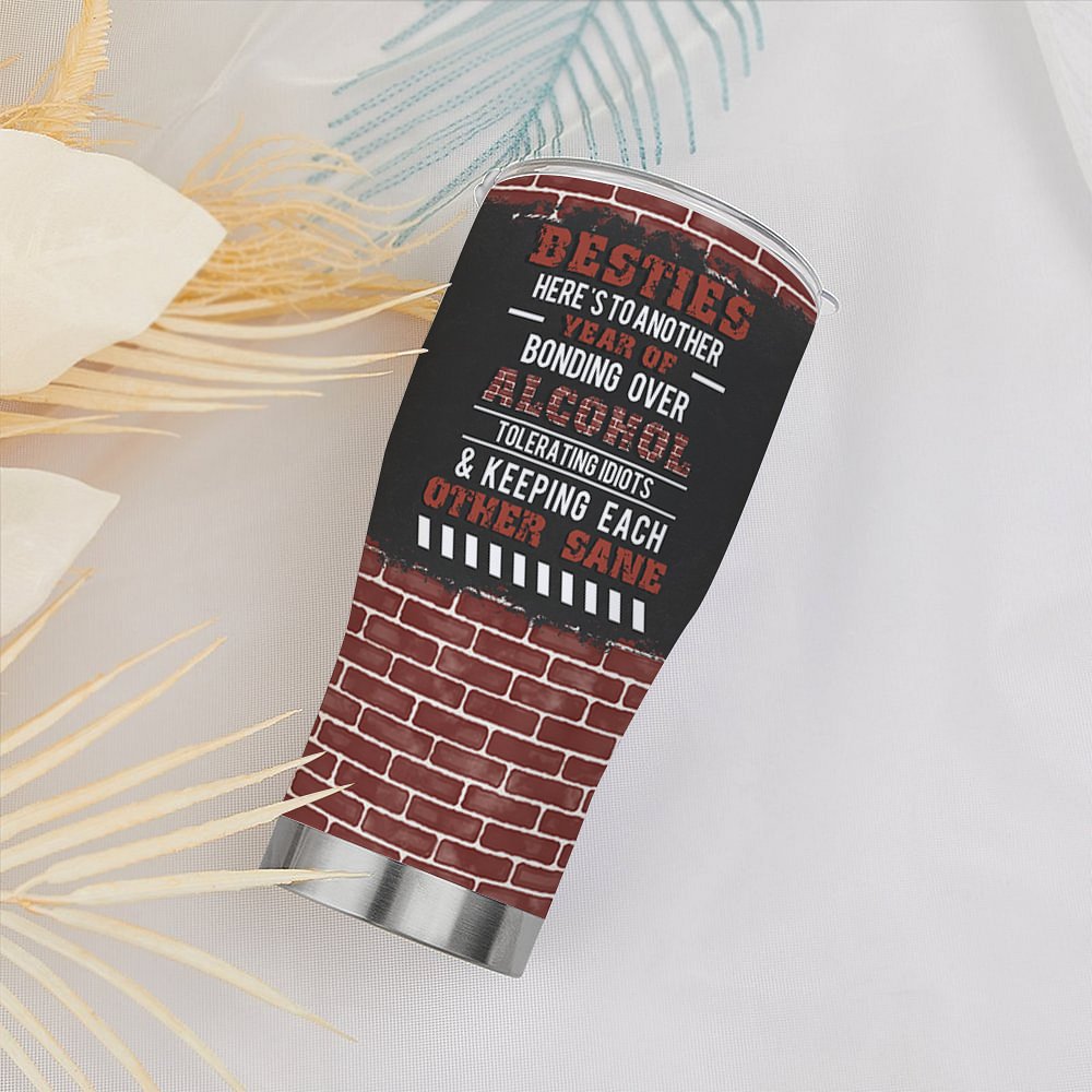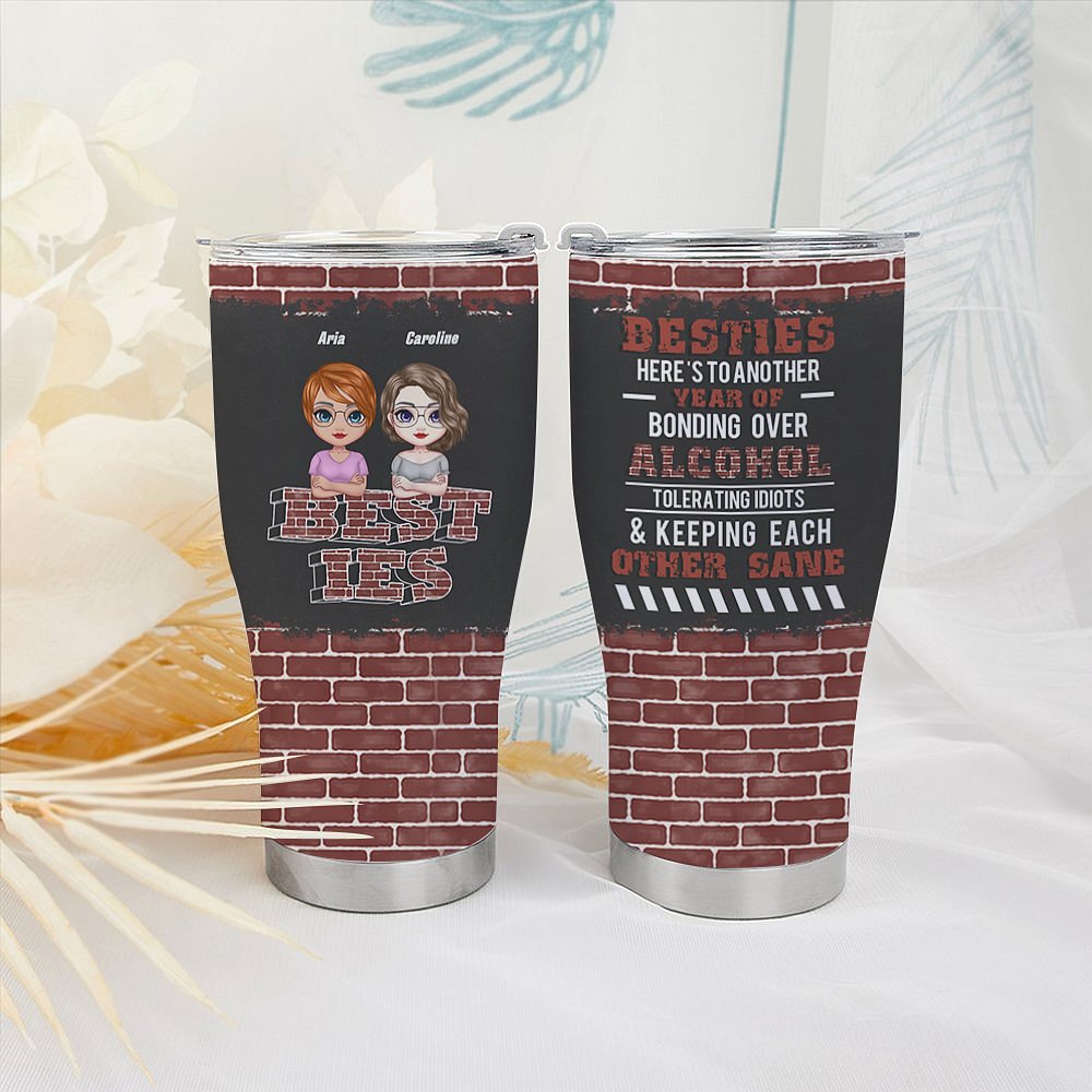 Henkilökohtainen Besties kaareva Tumbler Tässä on toinen vuosi Bonding yli alkoholin sietäminen Idiootit ja pitää toisiaan järjissään lahja ystävälle