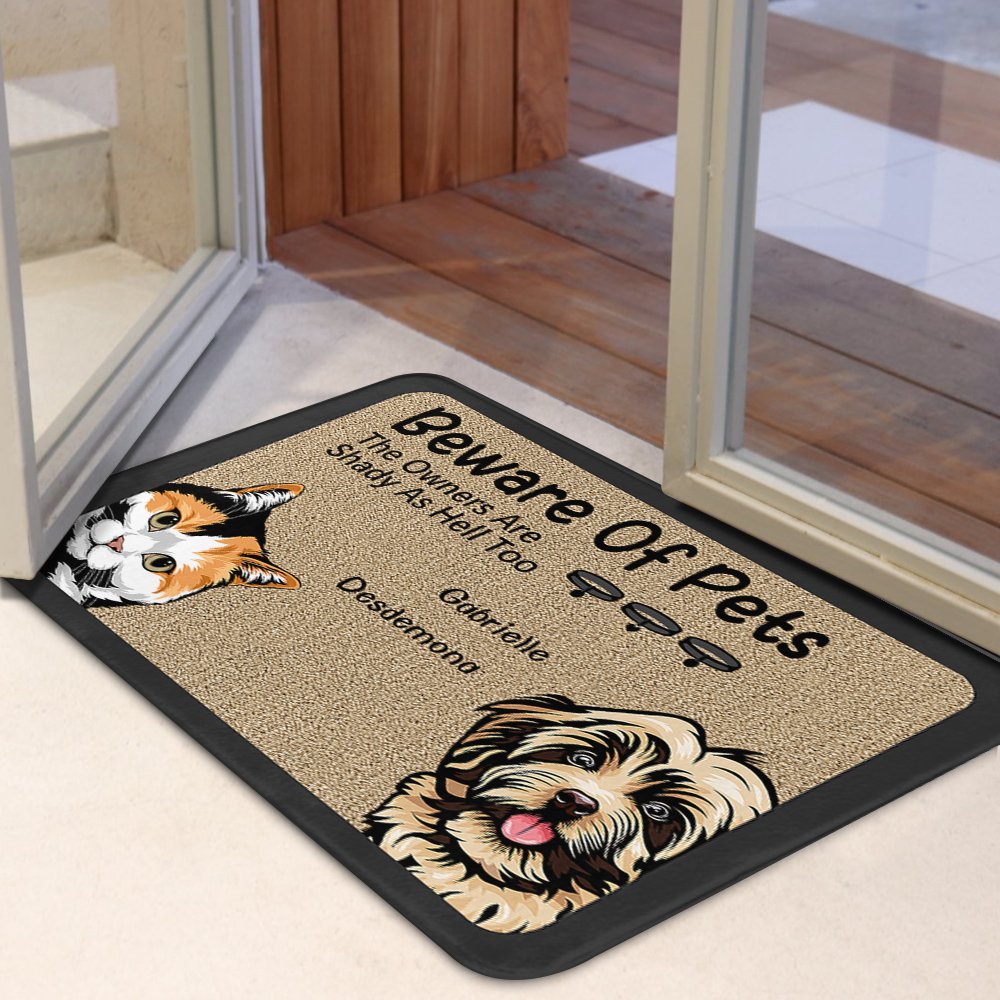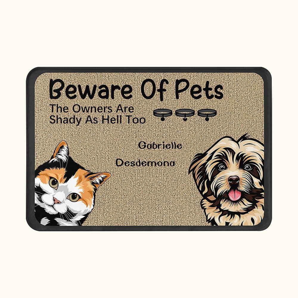 We printed "Beware Of Pet/Pets The Owners Are Shady As Hell Too" on the doormat. The fun and witty message adds interest to the doormat and expresses pet owners' love for their furry friends.