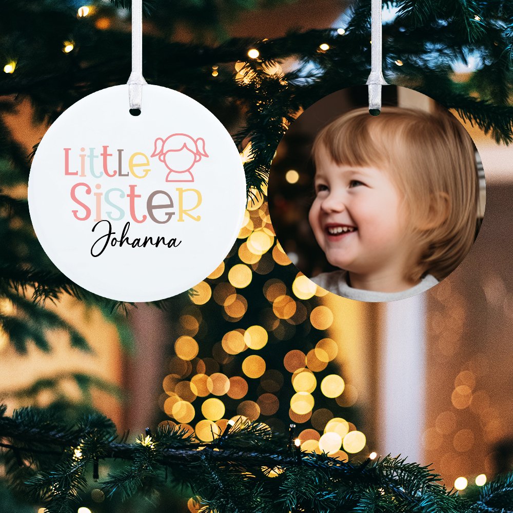 The design of this ornament is simple and cute, showing the image of the big/little brother and sister. It is very cute to hang on the Christmas tree or other places.