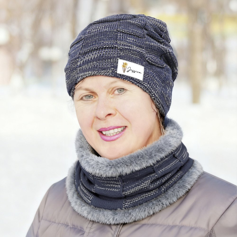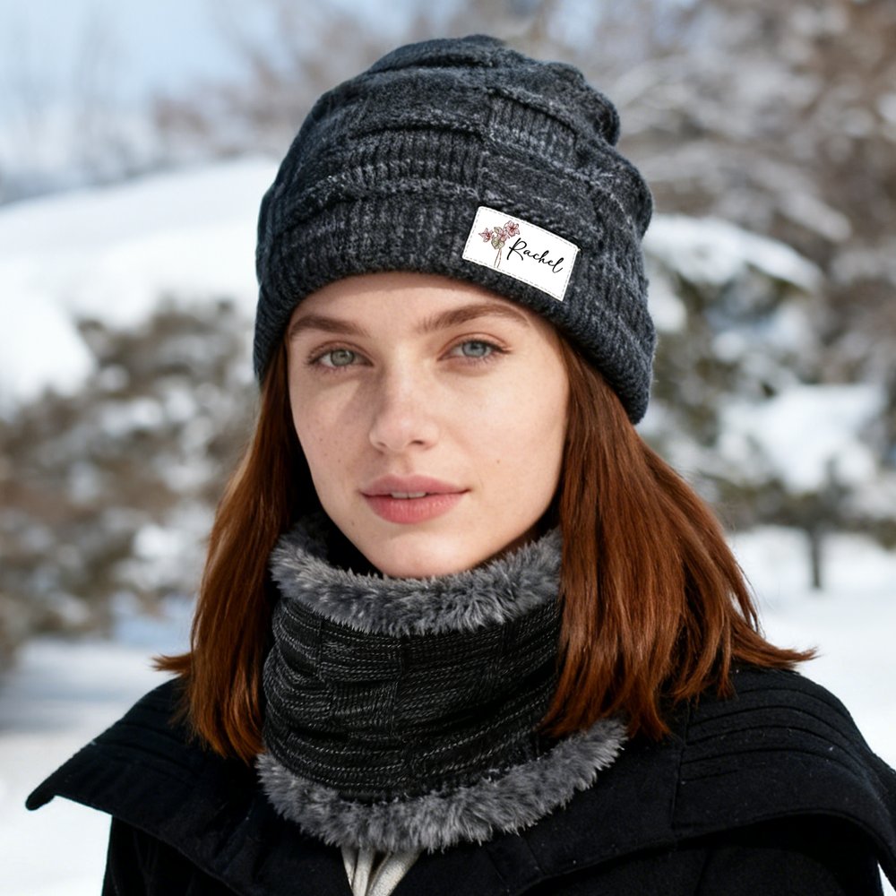Henkilökohtainen Syntymä Kukka Neulottu Slouchy Beanie Hattu ja kaulanlämmitin Set nimi Outdoor Activity Accessory Syntymäpäivä Joululahja miehille Naisille