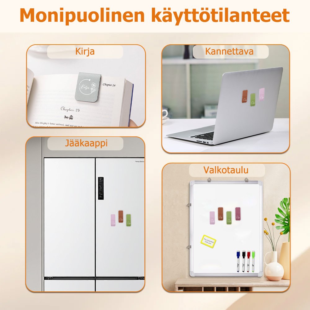 Tämä kirjanmerkki on valmistettu laadukkaasta nahasta, joka on kestävää ja luo tyylikään tunnelman. Magnettisella suunnittelullaan se kiinnittyy helposti kirjan sivujen väliin, jolloin ei tarvitse huolehtia kirjanmeren liukumisesta tai katoamisesta.