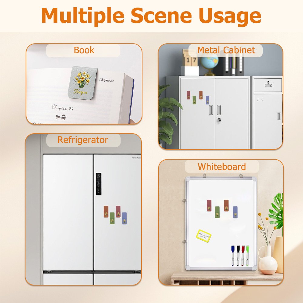 Sitä voidaan käyttää lukumerkkinä, ja sen magneettinen muotoilu kiinnittyy turvallisesti kirjoihin, mikä auttaa sinua seuraamaan lukemisen edistymistäsi helposti ja tekee siitä kätevän käyttää. Se on käytännöllinen apuväline päivittäiseen lukemiseen, kouluopiskeluun ja toimistotyöhön. Sen ohut ja kompakti koko tekee siitä helposti kannettavan eikä se vie paljon tilaa, täyttää käytännön tarpeet ja tuo samalla ripauksen tyylikkyyttä lukuhetkiin.