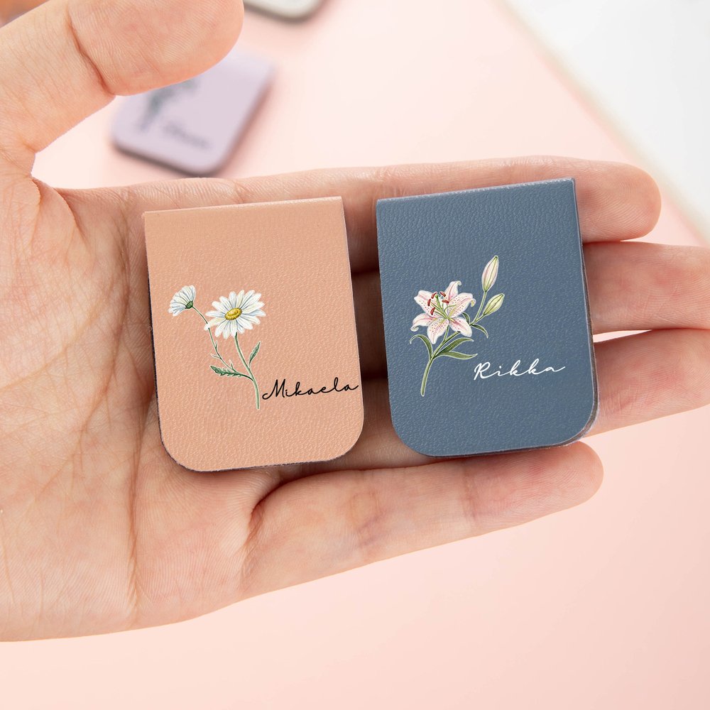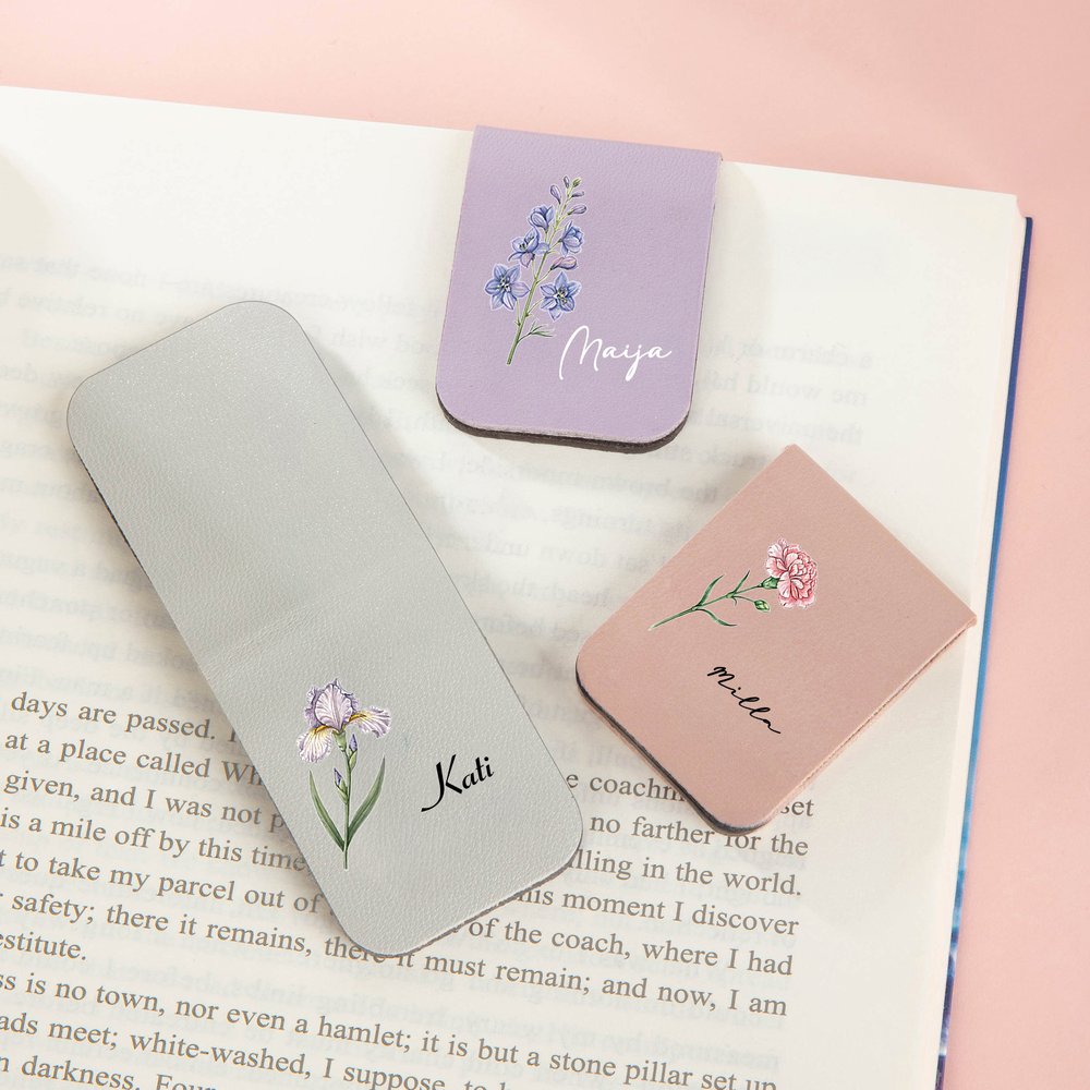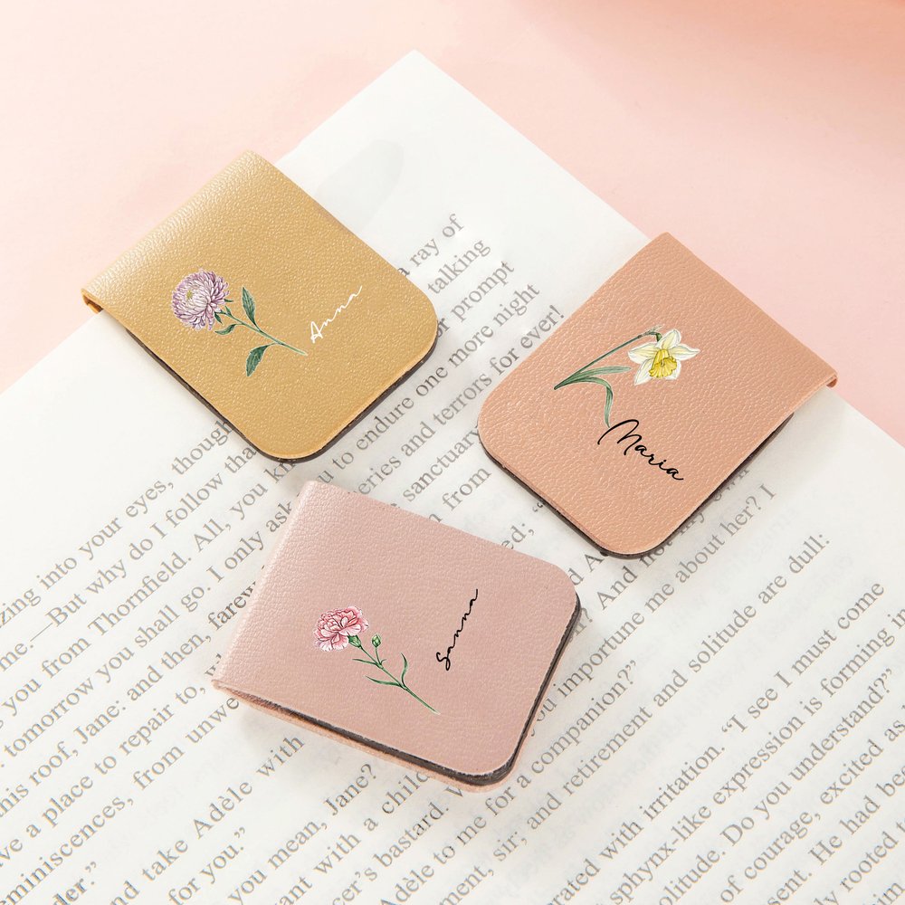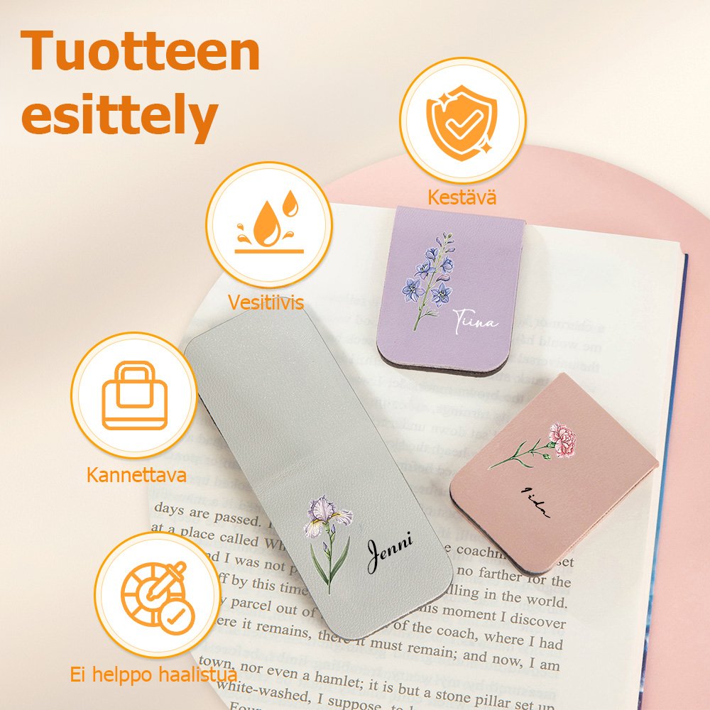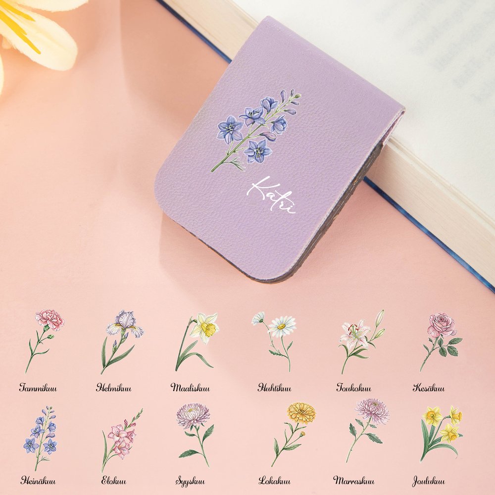 Personoitu syntymäkukka kirjanmerkki moniväriseksi pu nahkaan valmistettu täydelliseksi syntymäpäivälahjaksi kirjanystävälle