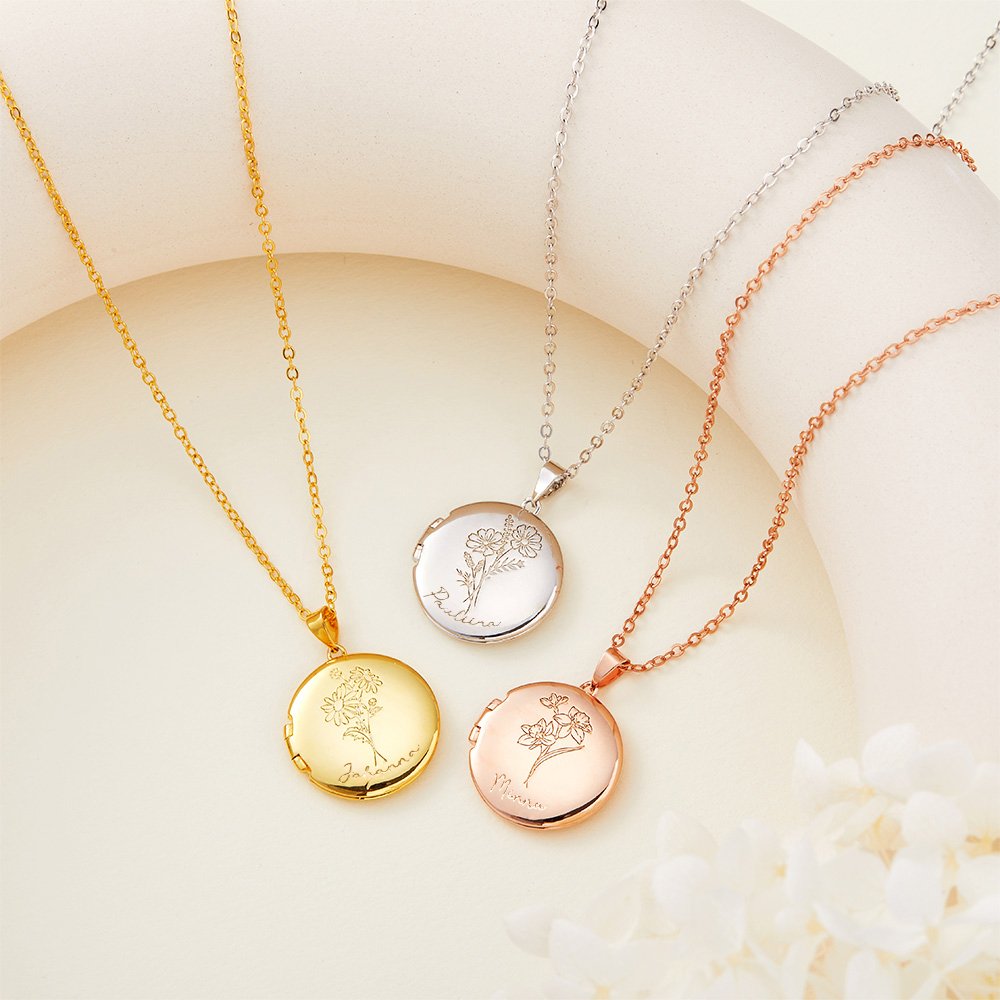 Tämä personoitu syntymäkukkainen valokuvalukollinen kaulakoru on lämminhenkinen tapa pitää tärkeät muistot lähellä sydäntä. Avattavan lukon sisälle voi asettaa rakkaan valokuvan mikä tekee korusta merkityksellisen muistoesineen.