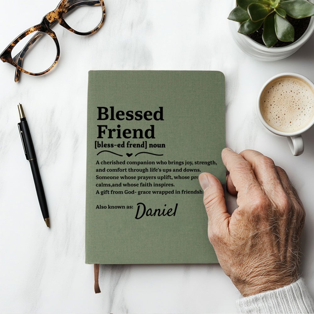 Tämä muistikirja juhlistaa uskon ja ystävyyden välistä yhteyttä, ja sen kannessa on sydämelliset sanat, jotka kunnioittavat niitä erityisiä kumppaneita, jotka tuovat iloa, voimaa ja hengellistä rohkaisua elämäämme. Muokkaa se nimellä, jotta saat aikaan konkreettisen uskonilmauksen, joka tarjoaa erityisen tilan kirjoittamiselle ja rukoilemiselle tarkoituksen ja huolenpidon tunteella.