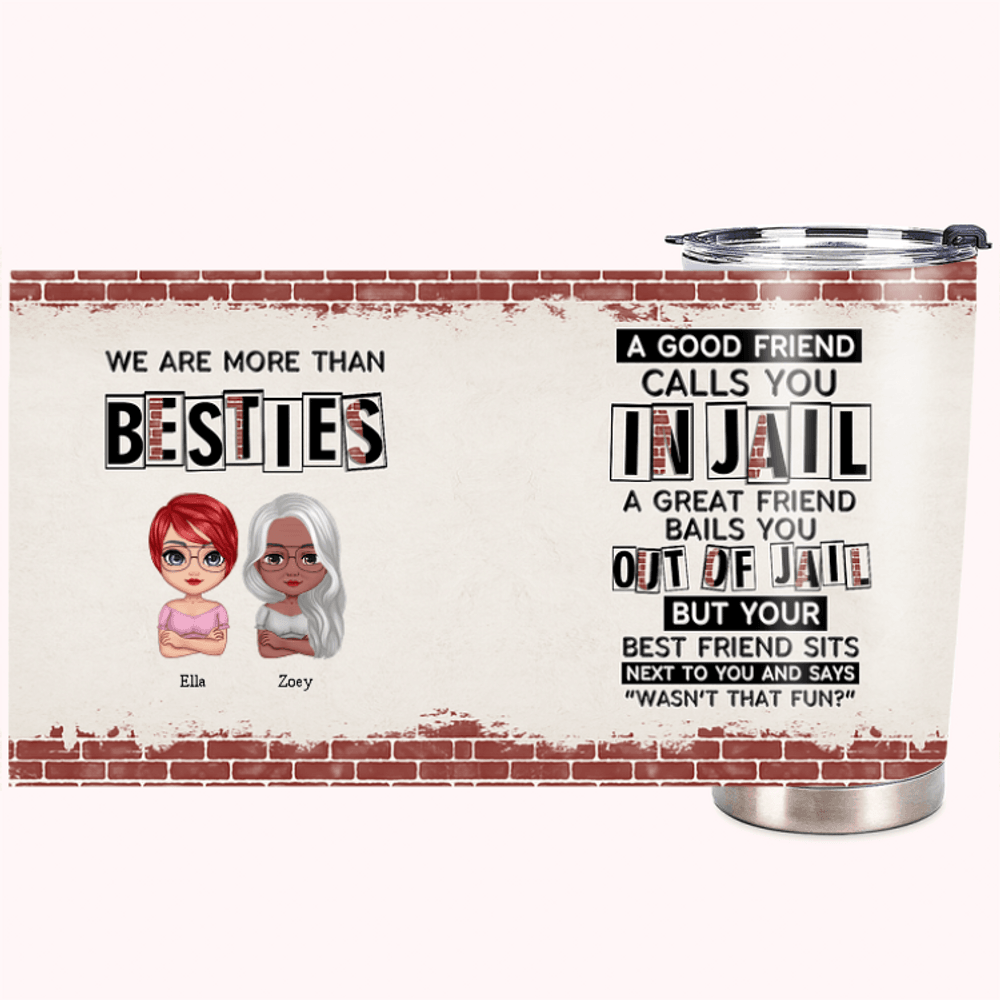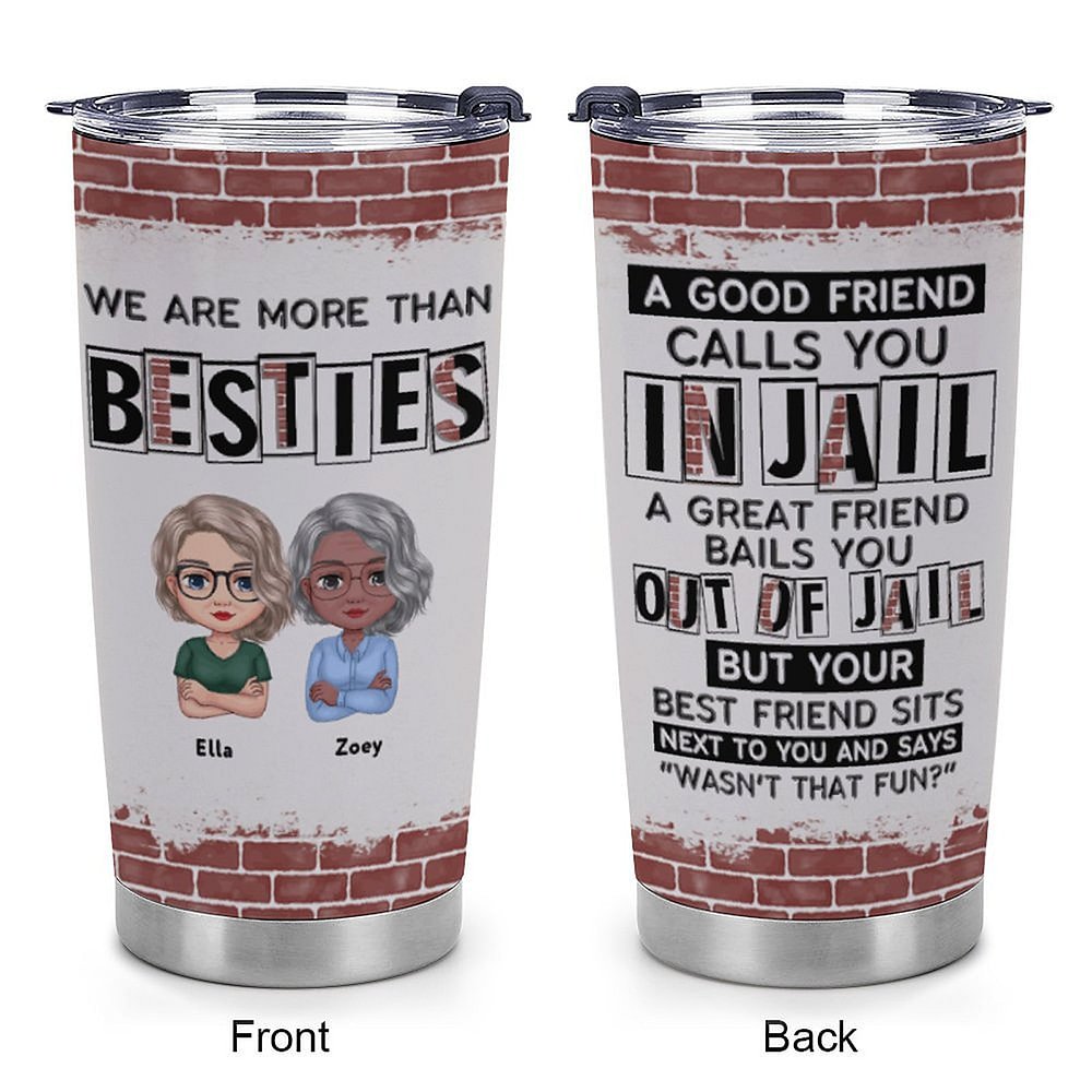 This 20oz tumbler is printed with a funny quote about best friends and can be customized with a cartoon look for 2 girls. Stand out from the crowd with this tumbler's eye-catching design. Its sleek and stylish look will make a statement wherever you use it.