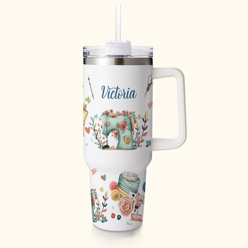 This tumbler is printed with sewing theme patterns, and you can also customize your name according to your preferences by choosing colors and fonts.