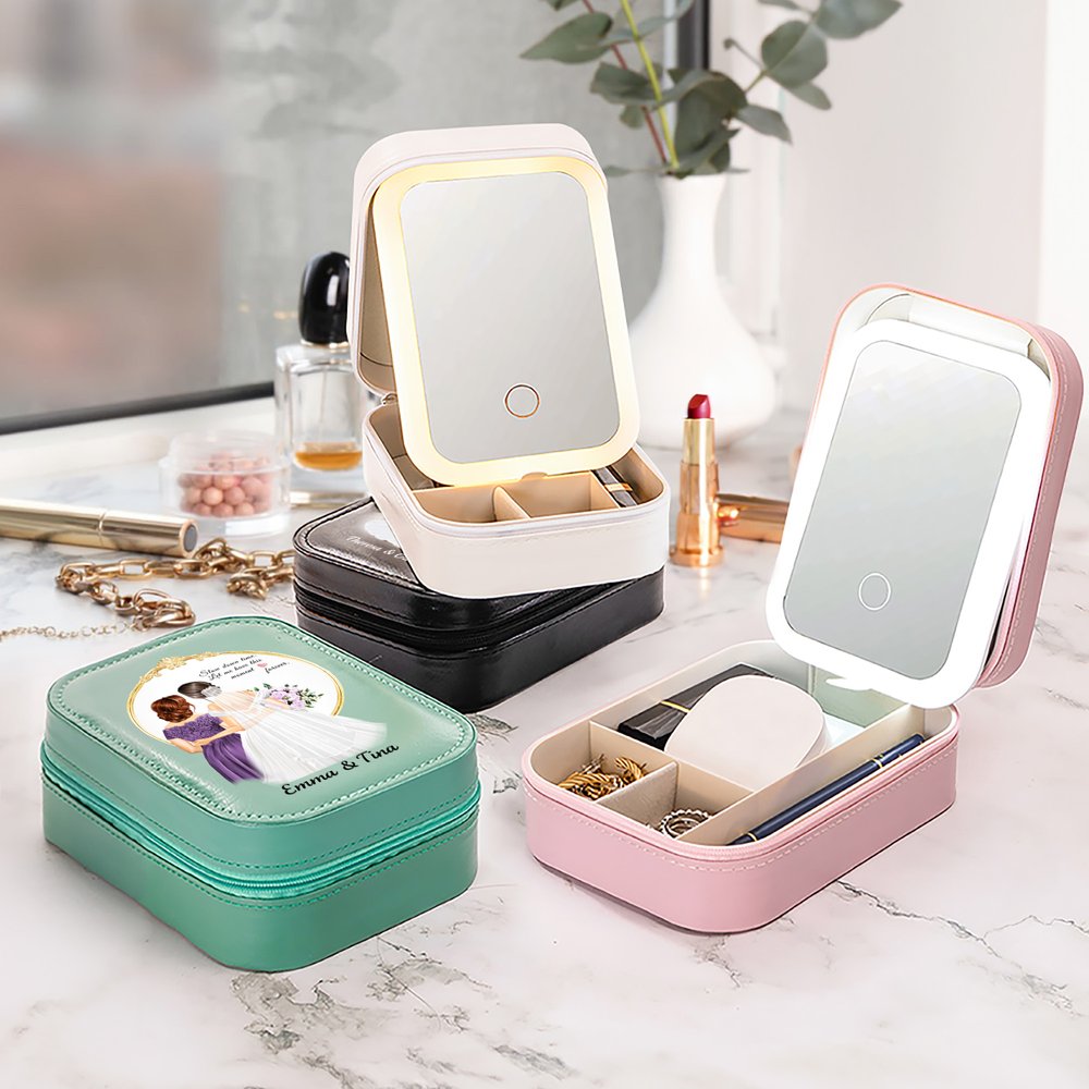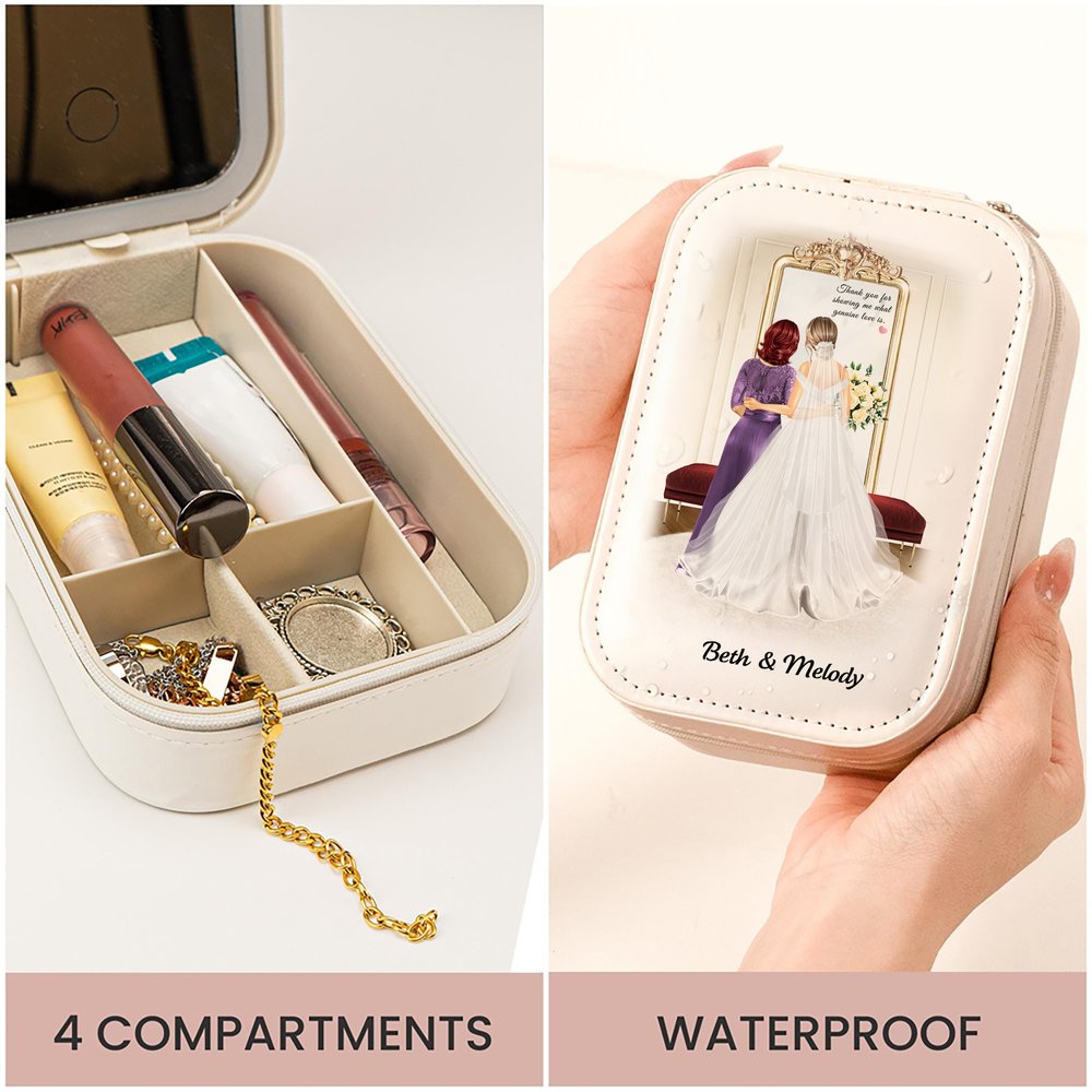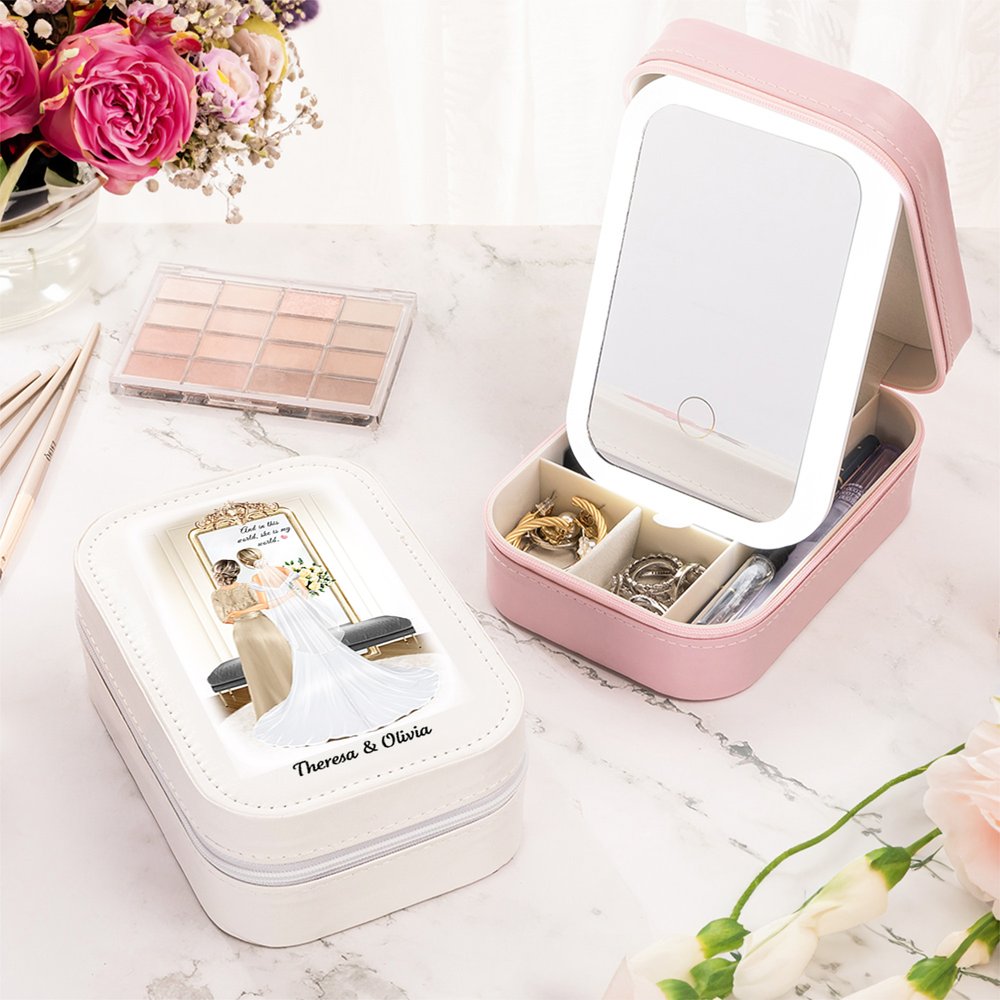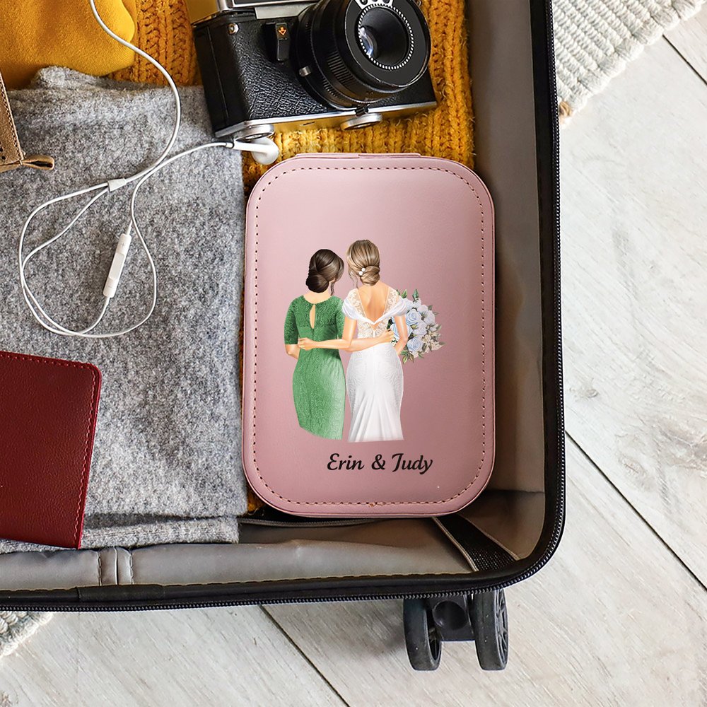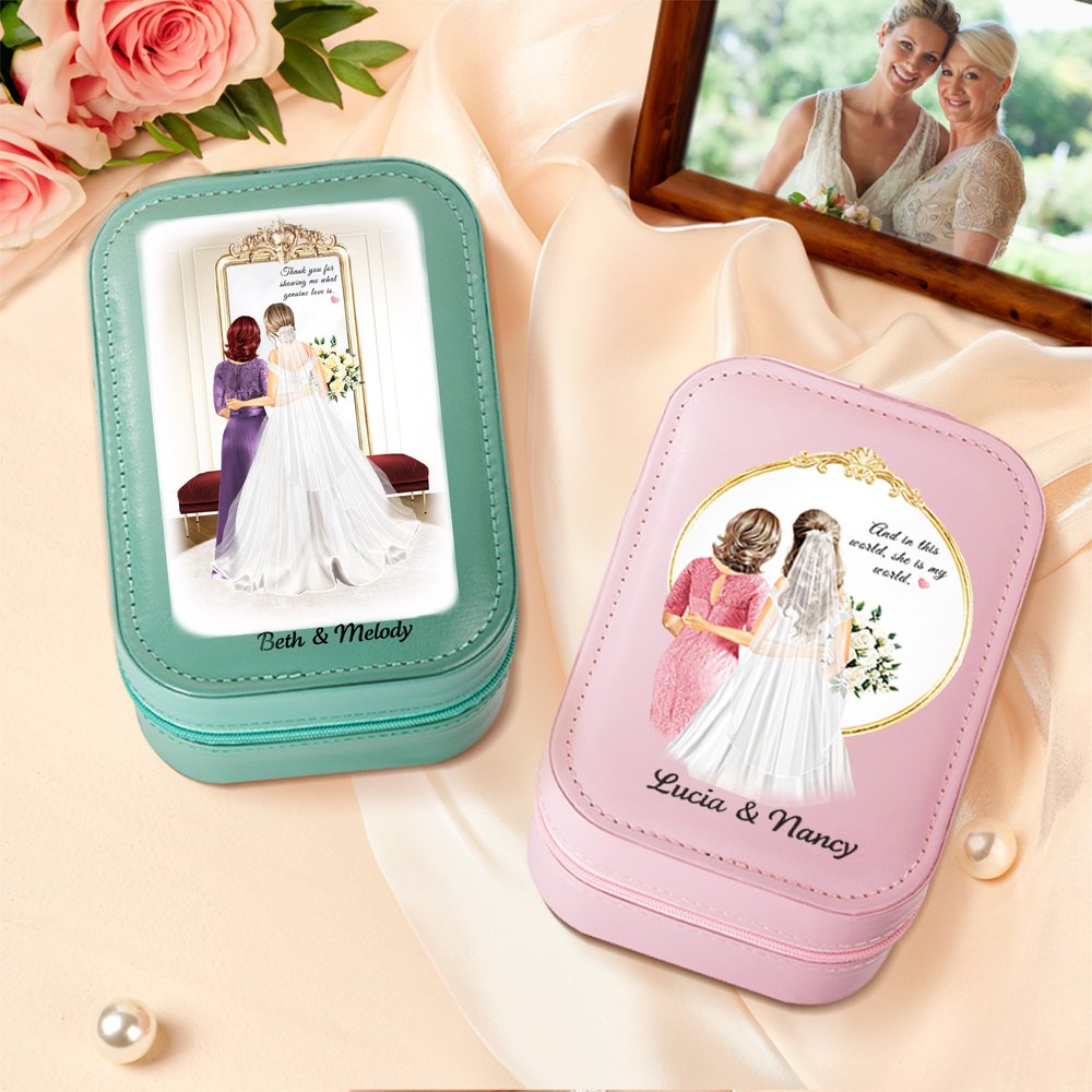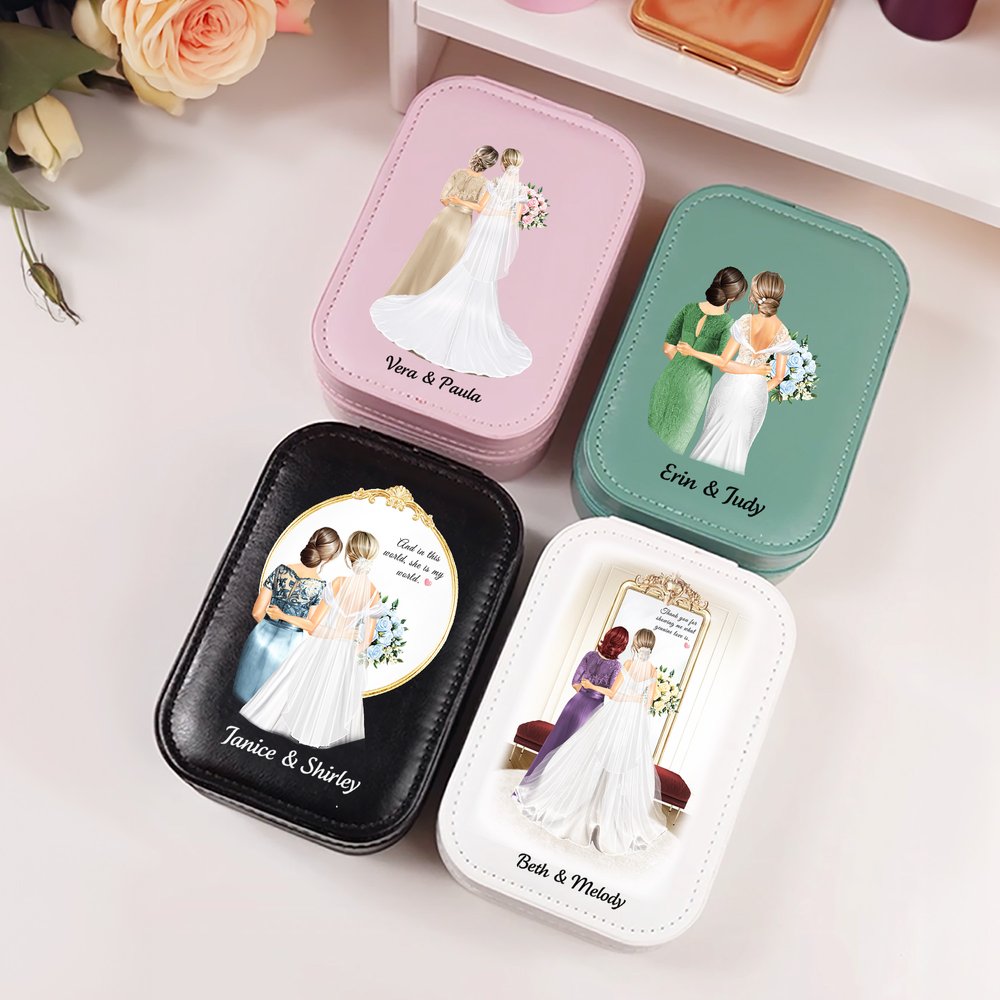Tässä hienossa korurasiassa on lämminhenkinen sarjakuvamalli morsiamesta ja hänen äidistään, joka ikuistaa heidän välisen arvokkaan siteen ja elämän kauneimmat hetket. Saatavana neljässä korurasian värissä, ja jokainen laatikko voidaan personoida morsiamen ja äidin nimillä, mikä tekee siitä arvokkaan muistoesineen.