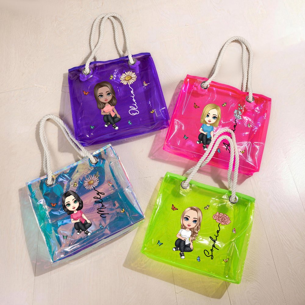 Kangaskassimme erottuu ainutlaatuisella läpinäkyvällä muotoilullaan, joka voi näyttää viehättävää neonhohtoa auringossa tai valossa, lisäämällä ripauksen muotia ja hauskuutta päivittäiseen kuljettamiseen. Tarjoamme erilaisia esiasetettuja sarjakuvahahmoja ja syntymäkukkakuvioita, joista voit valita yksilöllisiä tarpeitasi varten ja näyttää ainutlaatuisen makusi. Mukautettavissa oleva nimimuotoilu tekee laukustasi entistäkin ainutlaatuisemman.