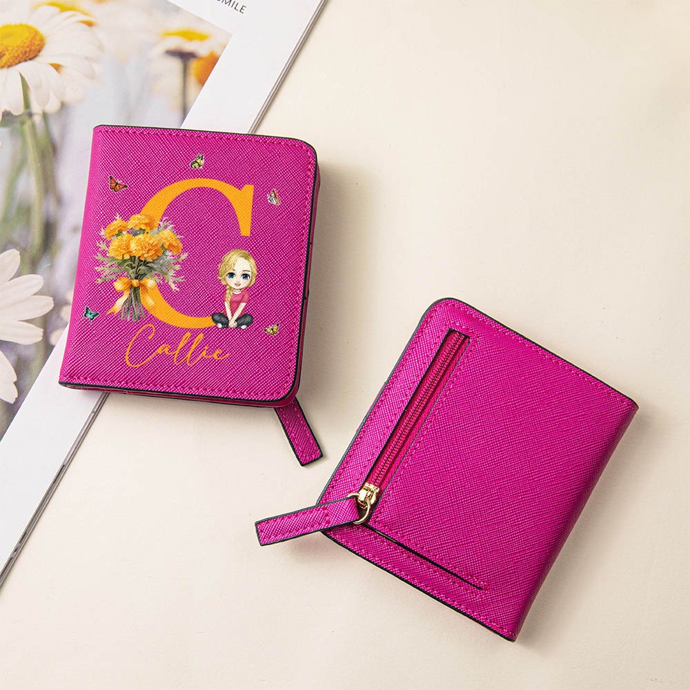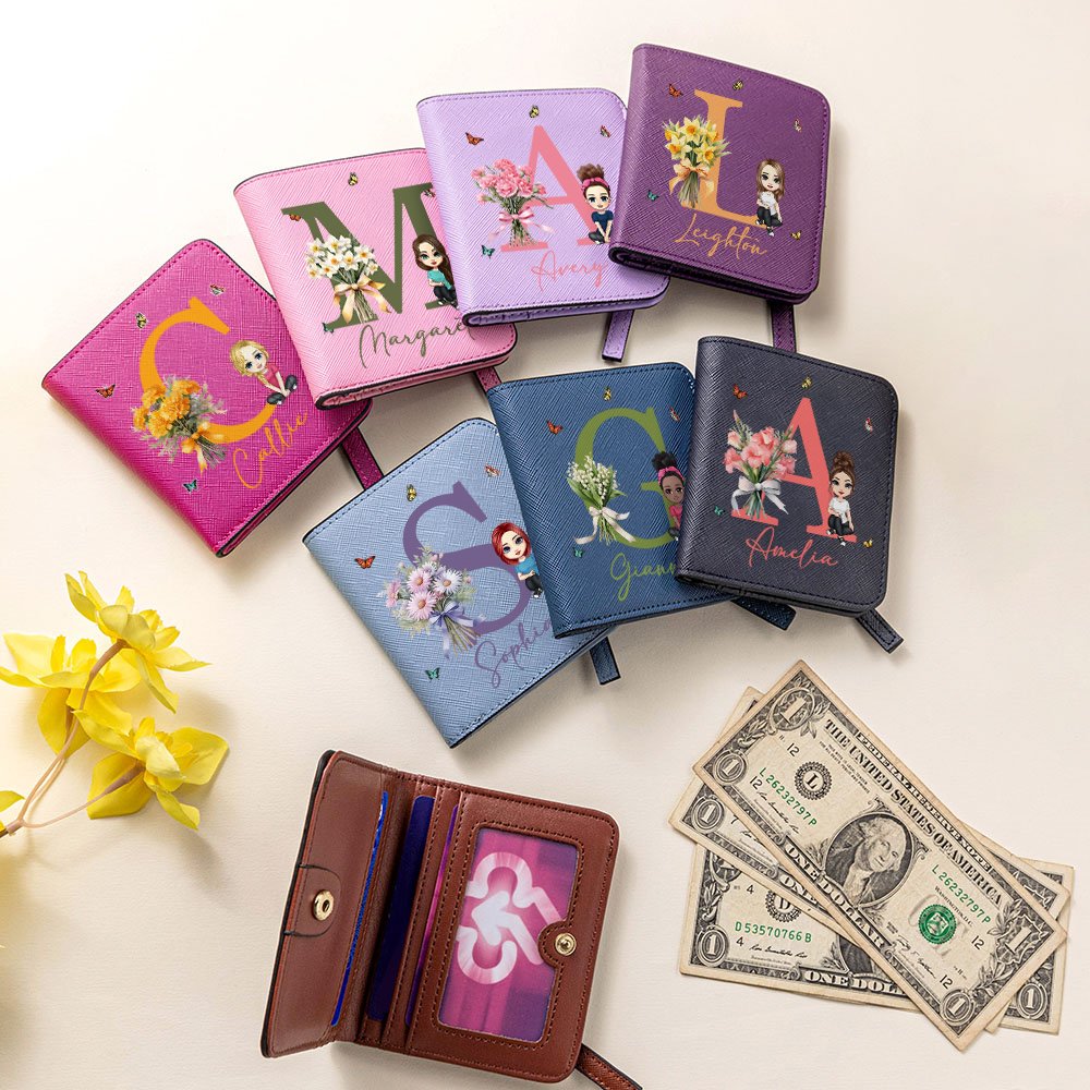 Tässä ainutlaatuisessa lompakossa yhdistyvät viehättävä sarjakuvahahmo ja syntymäpäiväkukat sekä perhoselementit, ja se on leikkisä mutta hienostunut. Jokaisessa lompakossa on vastaanottajan nimi ja yksilölliset nimikirjaimet, mikä takaa, että lompakko on yksilöllinen kappale.