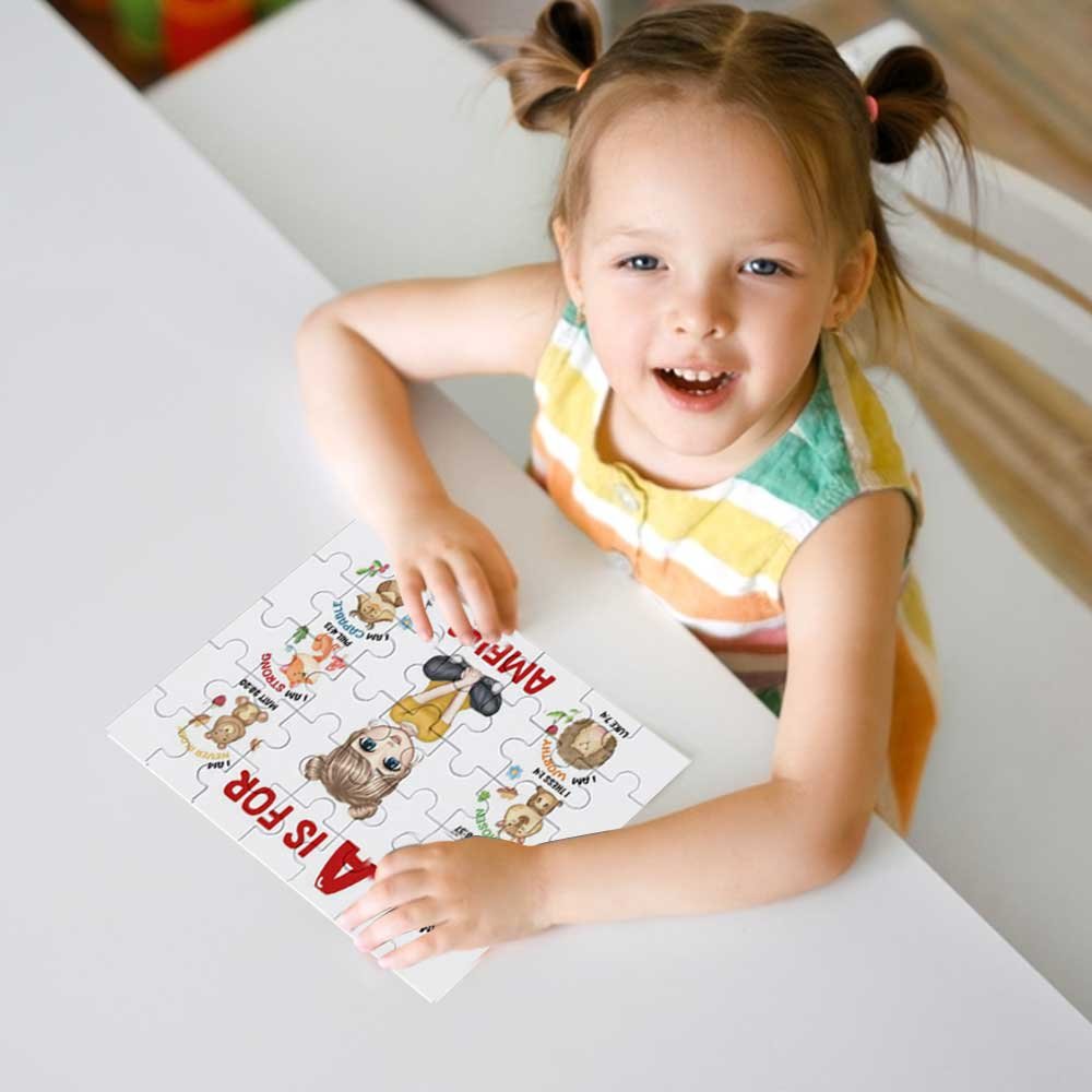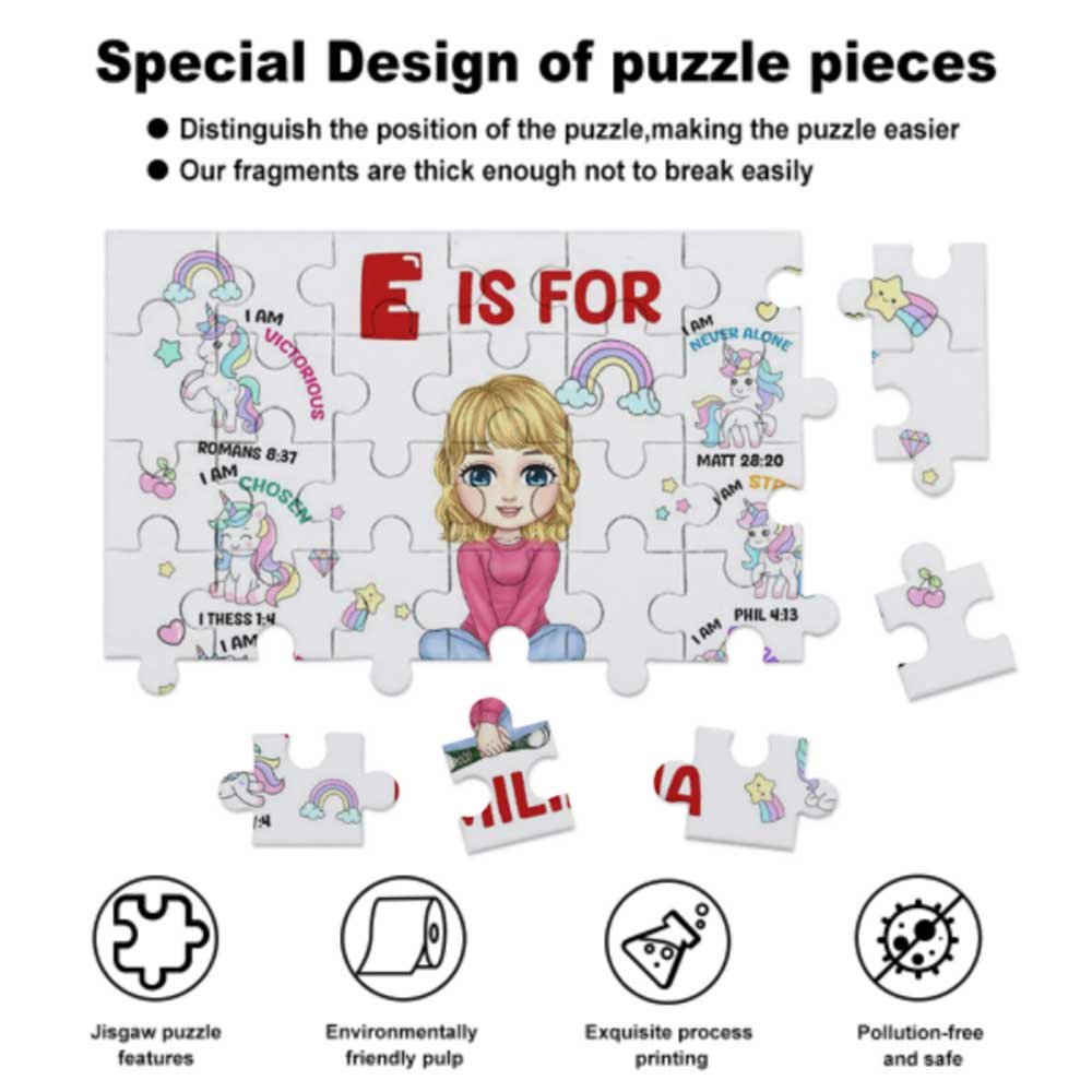 Tämä palapeli herättää lasten huomion ainutlaatuisella muotoilullaan. Palapeli sisältää kuusi mielikuvituksellista fantasia-aihetta, joista jokainen keskittyy söpöihin sarjakuvahahmoihin, joissa on kirkkaita värejä ja eläviä kuvioita, jotka luovat satumaailman, joka on täynnä hauskuutta. Lisäksi palapeli tukee myös lasten nimien ja nimikirjaimien lisäämistä, mikä tekee jokaisesta palapelistä ainutlaatuisen ja osoittaa henkilökohtaista eksklusiivista viehätystä.
