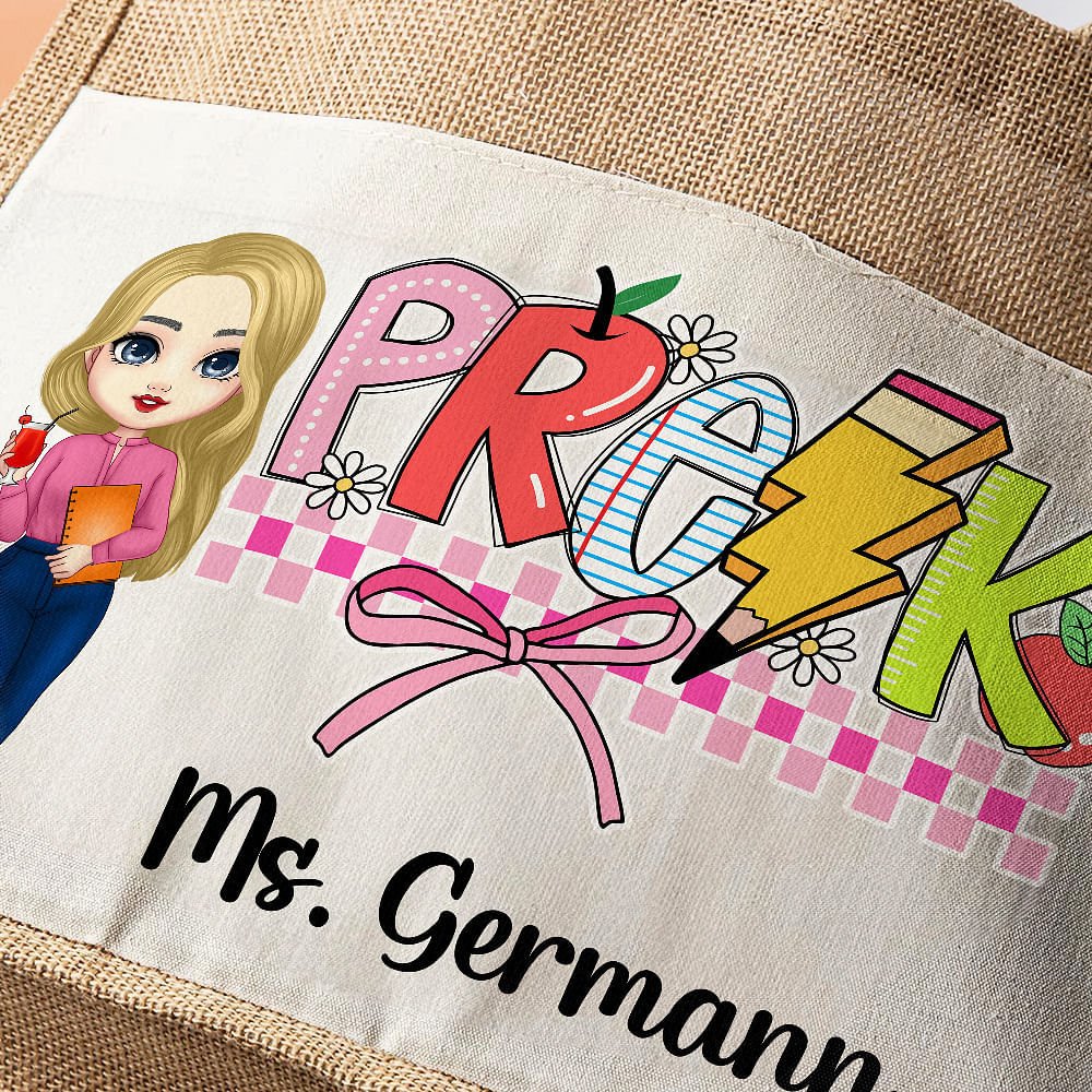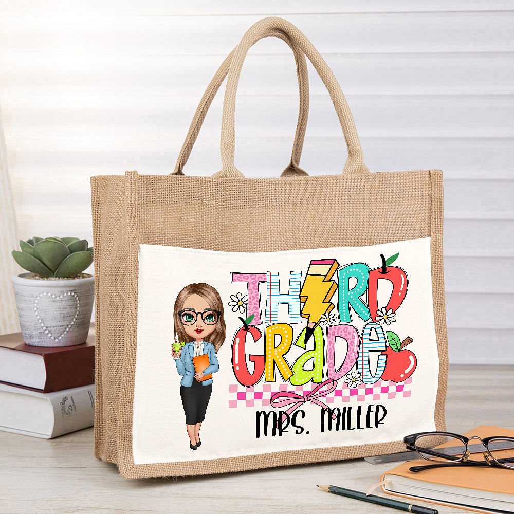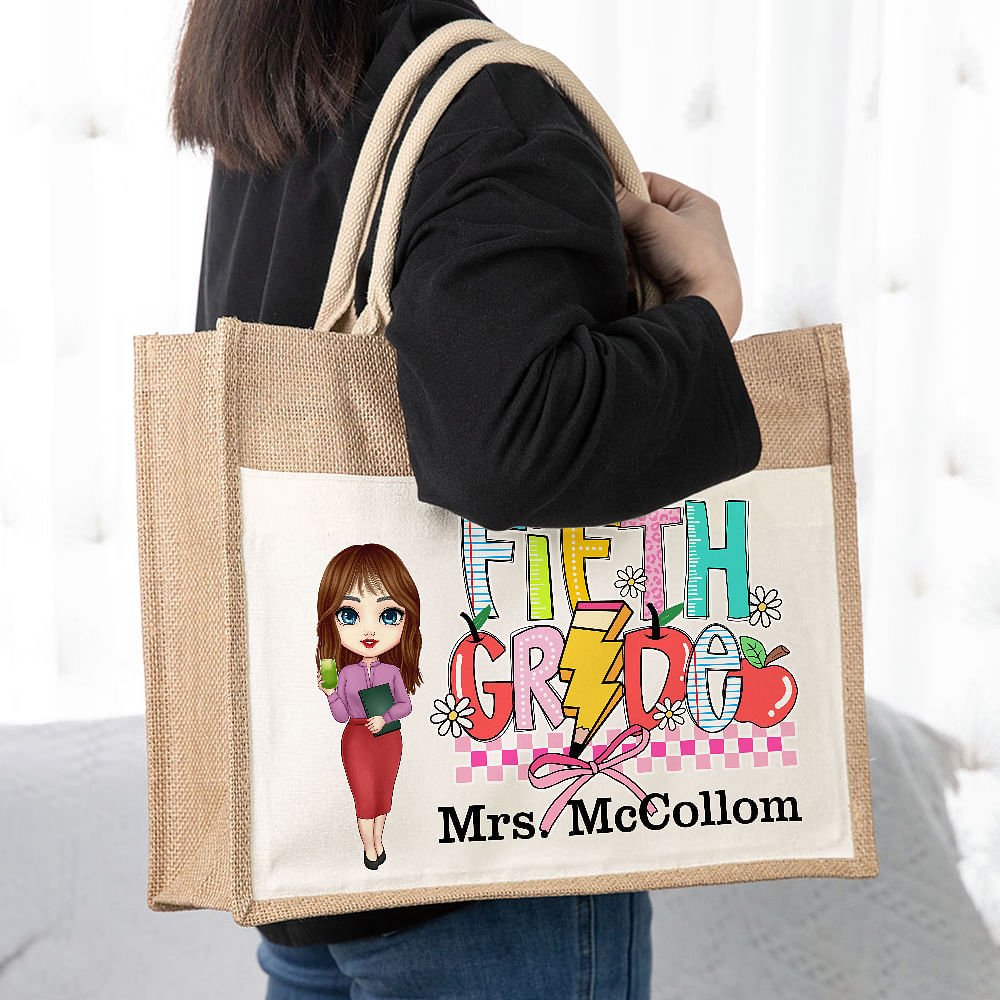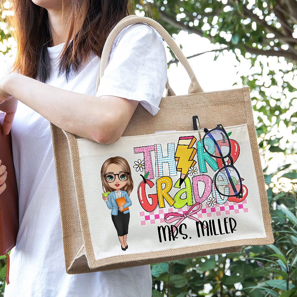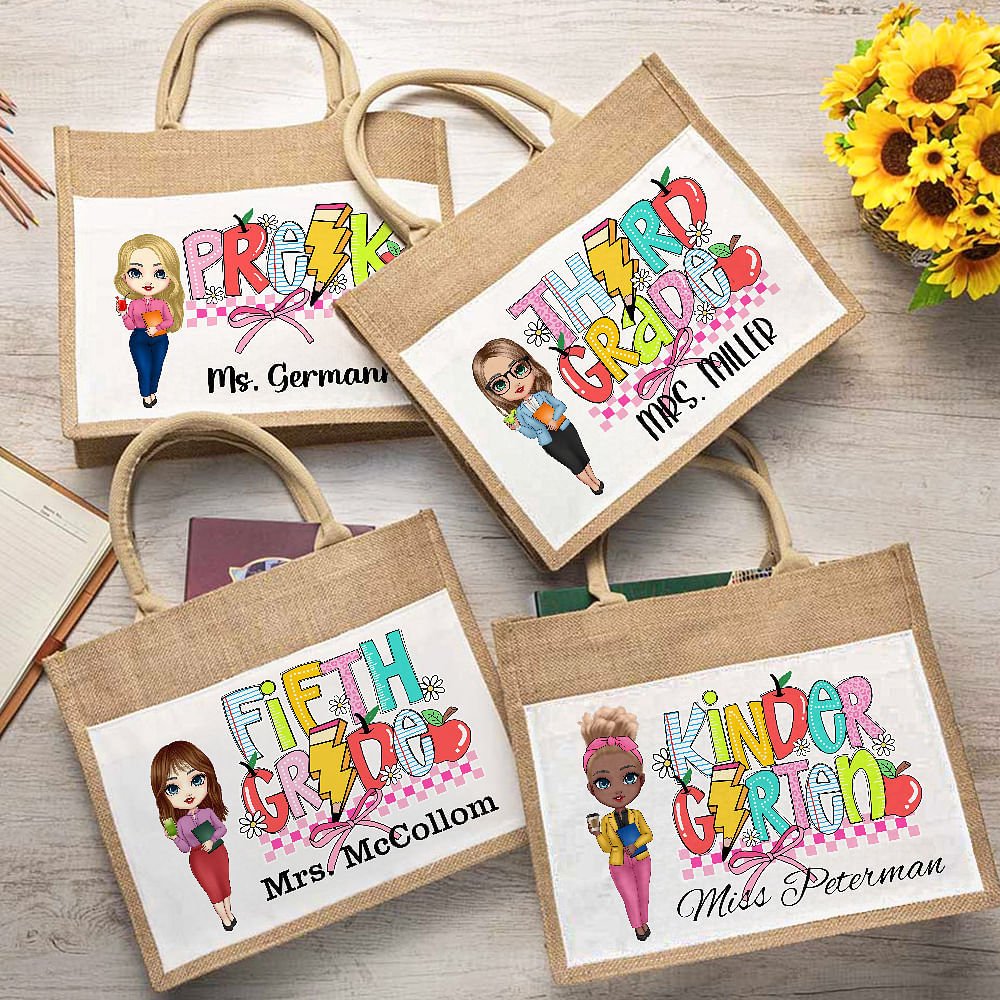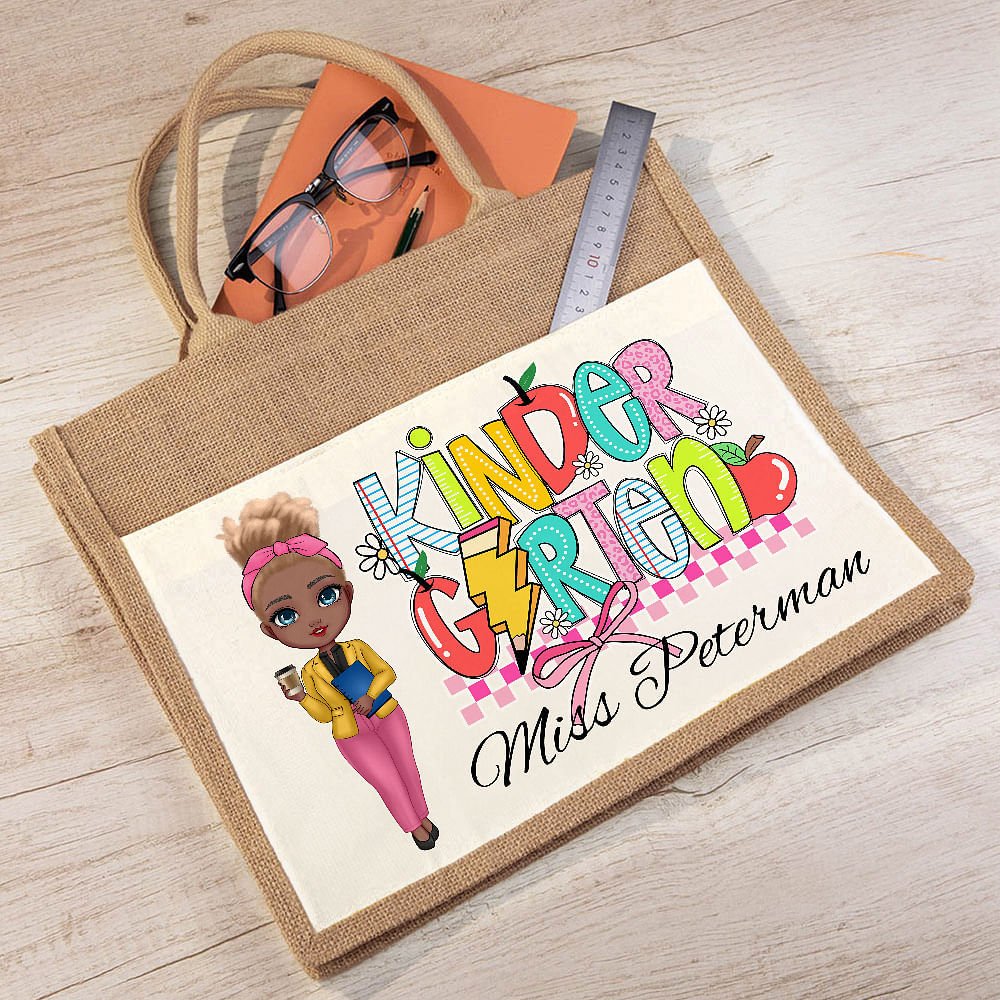 This tote bag stands out with its combination of cartoon teacher images and classic educational elements such as books, rulers, crayons, and custom text. The bright colors and pictures show the teachers' tireless efforts, energy, and enthusiasm for teaching.