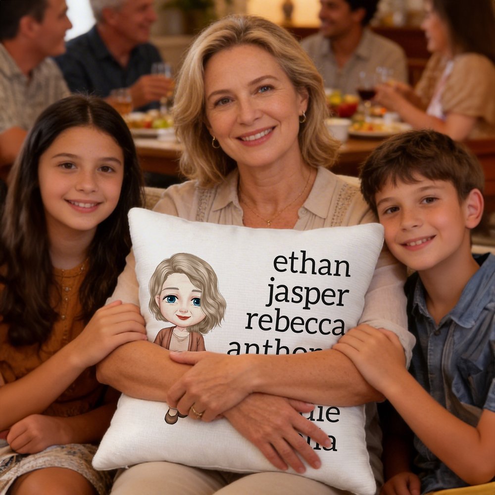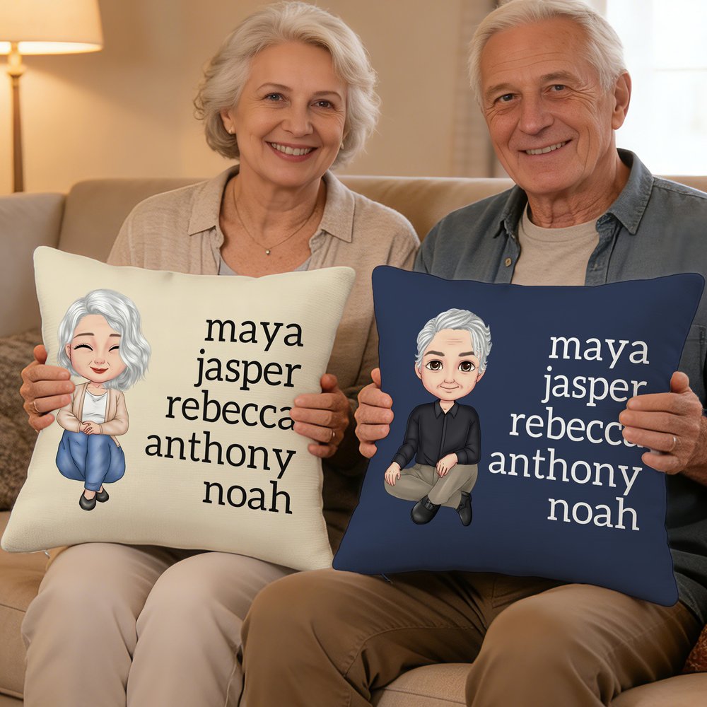 Tässä tyynynpäällisessä on eloisia sarjakuvahahmoja, jotka voidaan mukauttaa vastaamaan perheenjäsentesi persoonallisuutta ja vaatteita, ja jotka jäljittelevät tarkasti heidän ilmeitään. Voit myös lisätä hahmon viereen 1-13 perheenjäsenten nimet, jotta voit lisätä perheen identiteetin tunnetta ja muistamisen merkitystä ja ilmaista kodin lämpöä.