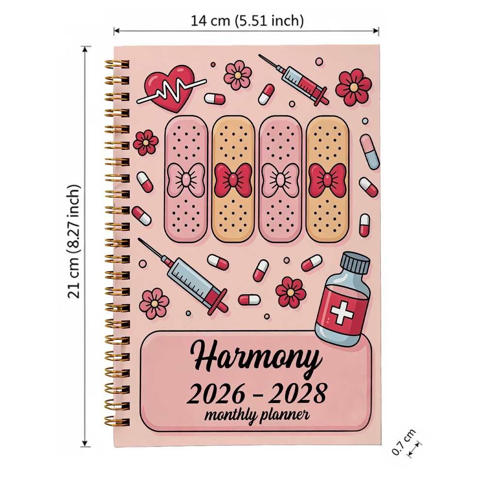 Kattaa vuodet 2026-2028 ja tarjoaa kolmen vuoden käyttöajan ilman tiheää vaihtoa. Sivuilla on sekä viikoittainen että kuukausittainen ulkoasu, jossa on selkeät jaottelut ja järjestetyt rakenteet työtehtävien, opiskelusuunnitelmien ja henkilökohtaisten aikataulujen joustavaa kirjaamista varten. Täydellinen sairaalavuorojen, työn painopisteiden ja päivittäisten velvollisuuksien hallintaan sekä henkilökohtaisen kehityksen ja elämäntoimien tehokkaaseen suunnitteluun.