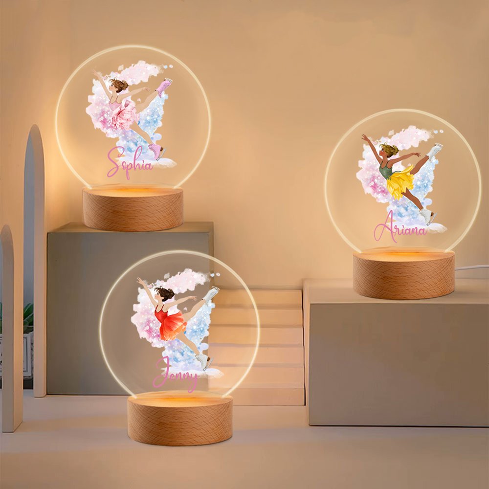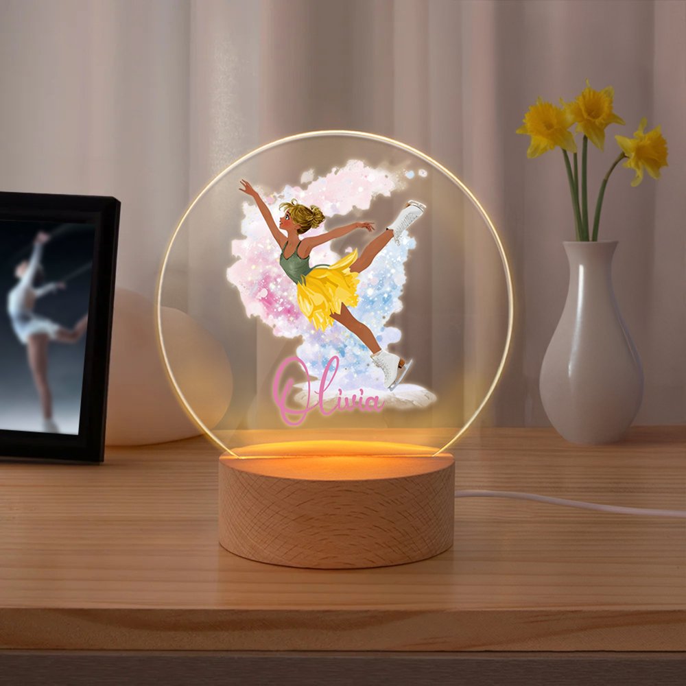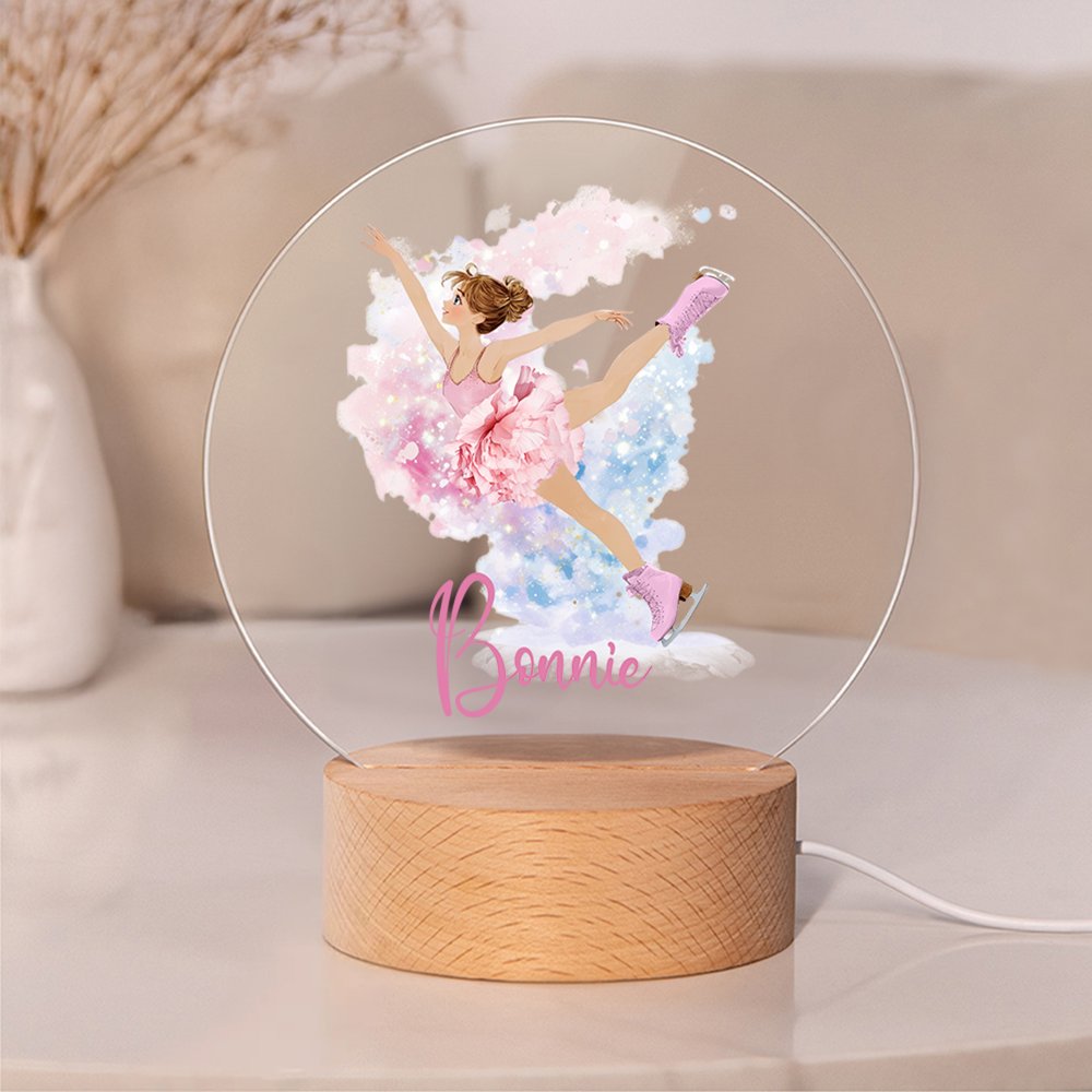 Keskipisteenä on luisteleva tyttö, joka yhdistää syntymäkukkaelementtejä ja ainutlaatuisia merkityksiä, ja siinä yhdistyvät taitavasti urheilullinen elinvoima ja luonnollinen pehmeys. Mukauta tytön kuva vastaanottajan tai lapsen ulkonäön perusteella, valitse hameeseen syntymäkukkakuviot ja kaiverra siihen nimet. Tee jokaisesta yövalosta yksilöllinen, mikä heijastaa lasten rakkautta luisteluun.