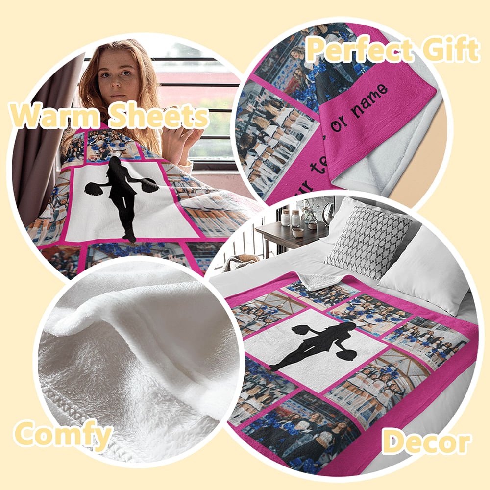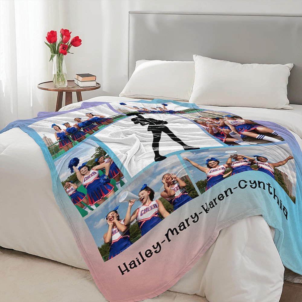 Vangitse cheerleadingin henki ja energia tällä mukautetulla valokuvakollaasilla varustetulla huovalla. Personoi se 4, 6 tai 8 dynaamisella toimintakuvalla cheerleaderistasi ja luo ainutlaatuisen muistoesineen.