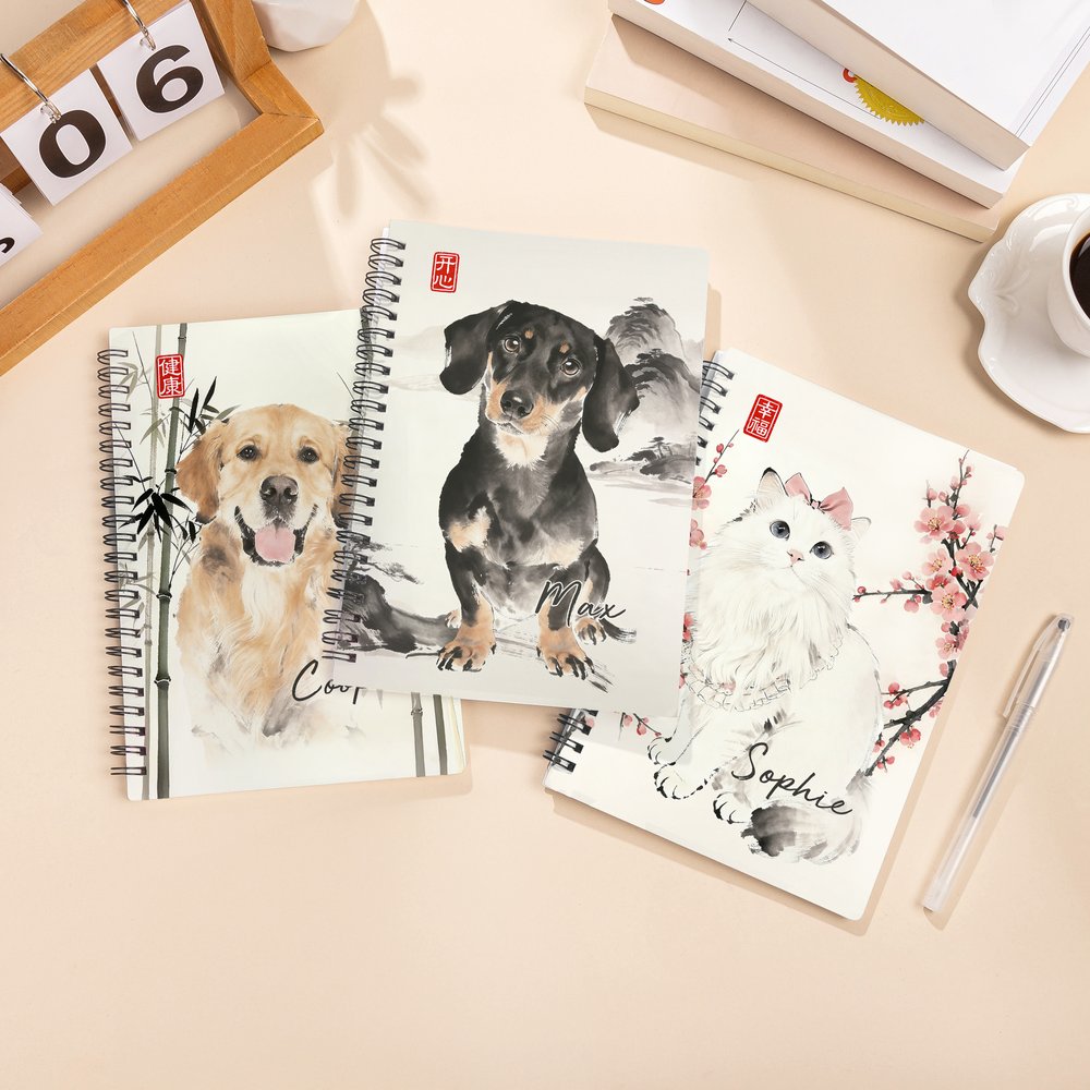Muistikirjamme kansi voidaan räätälöidä kiinalaistyylisellä lemmikkieläimen valokuvalla ja nimellä, mikä luo ainutlaatuisen "lemmikkipäiväkirjan", joka kuvastaa jokaisen lemmikin persoonallisuutta. Olipa kyseessä söpö kissa tai eloisa koira, tätä muistikirjaa voi vaalia ikuisesti ja se voi toimia lemmikinomistajien tunneturvana.