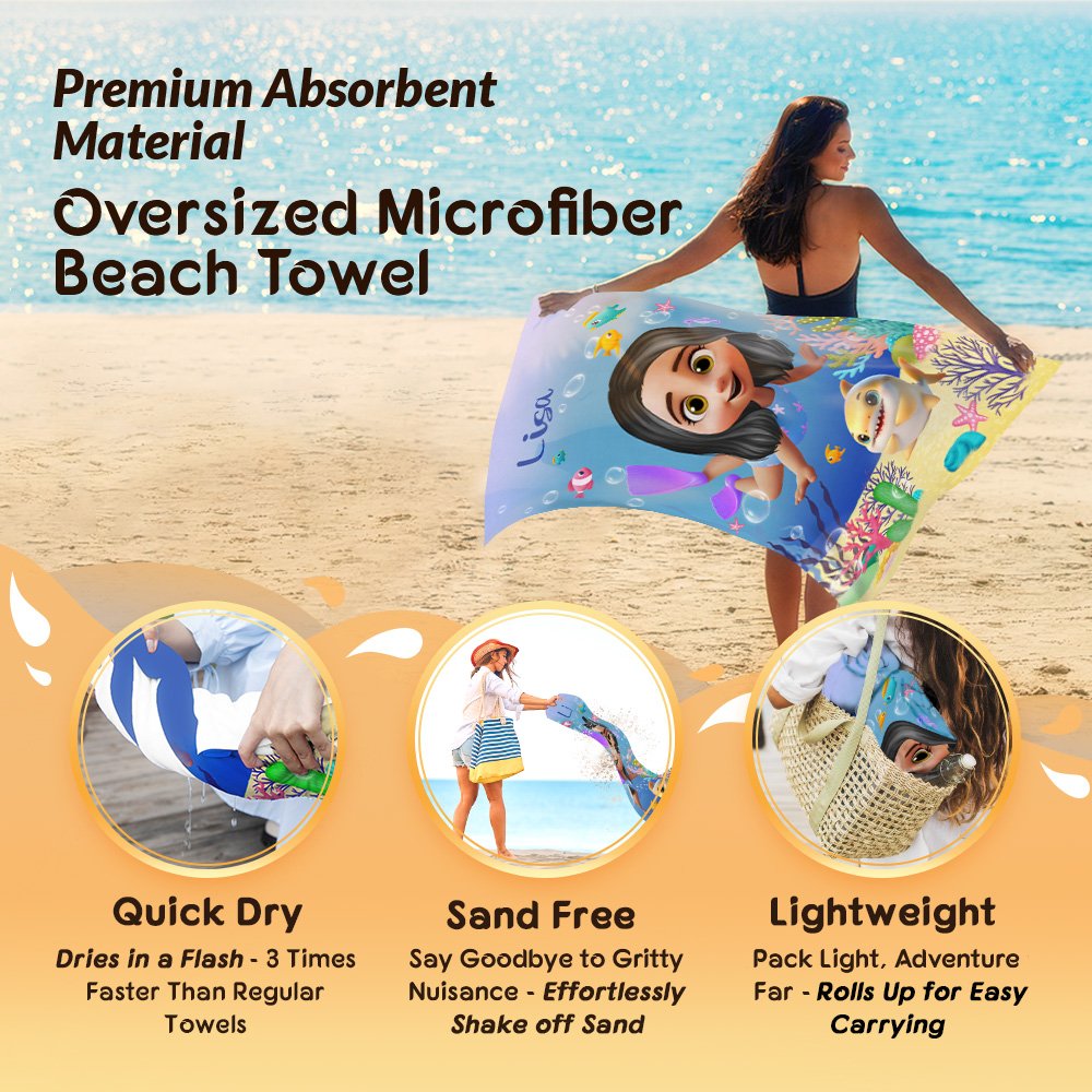 | Ominaisuus: | Erittäin imukykyinen, nopeasti kuivuva, hiekaton, kestävä ja pehmeä, ylimitoitettu, kevyt ja kannettava, sarjakuva lapsi, merieläin |