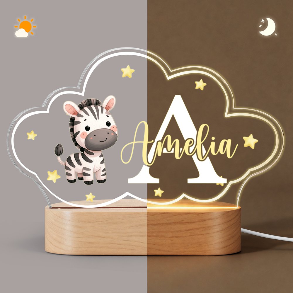 Tässä yövalossa on suloisia eläimiä pääsuunnitteluelementtinä, ja siinä yhdistyvät eloisat värit ja omituinen pilvimäinen muoto, jota lapset rakastavat kovasti. Voit myös mukauttaa nimikirjaimet ja nimet henkilökohtaisen kosketuksen lisäämiseksi. Tämä leikkisä muotoilu ei vain lisää hauskuutta, vaan täyttää myös jokaisen yön lämmöllä ja unenomaisella tunnelmalla.