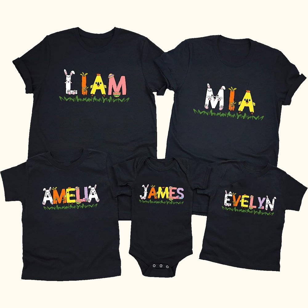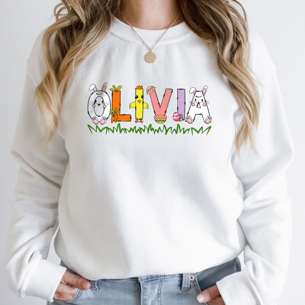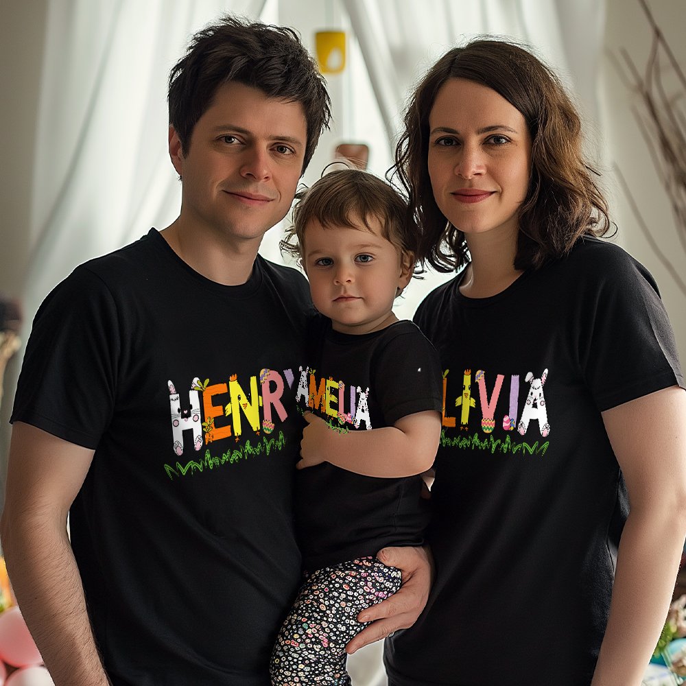 Make these Easter shirts, sweatshirts, and baby onesies extra special by personalizing them with a family member's name.