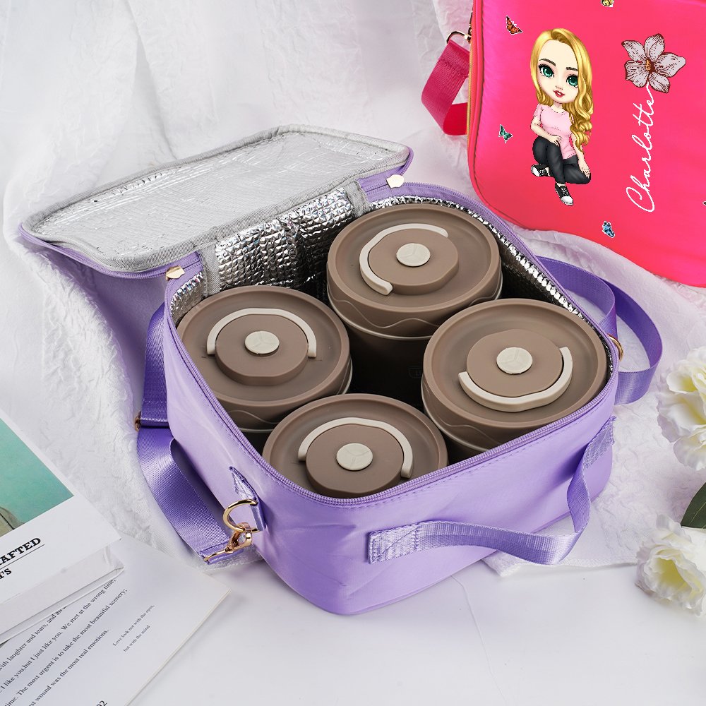 Mukautettavat sarjakuvahahmopainatukset, syntymäkukat ja nimikuviot mahdollistavat sen, että voit ilmaista persoonallisuuttasi ja makuasi tässä lounaslaukussa. Valittavana on neljä eloisaa väriä, joten lounaslaukkusi voi olla sekä toimiva että tyylikäs taideteos.