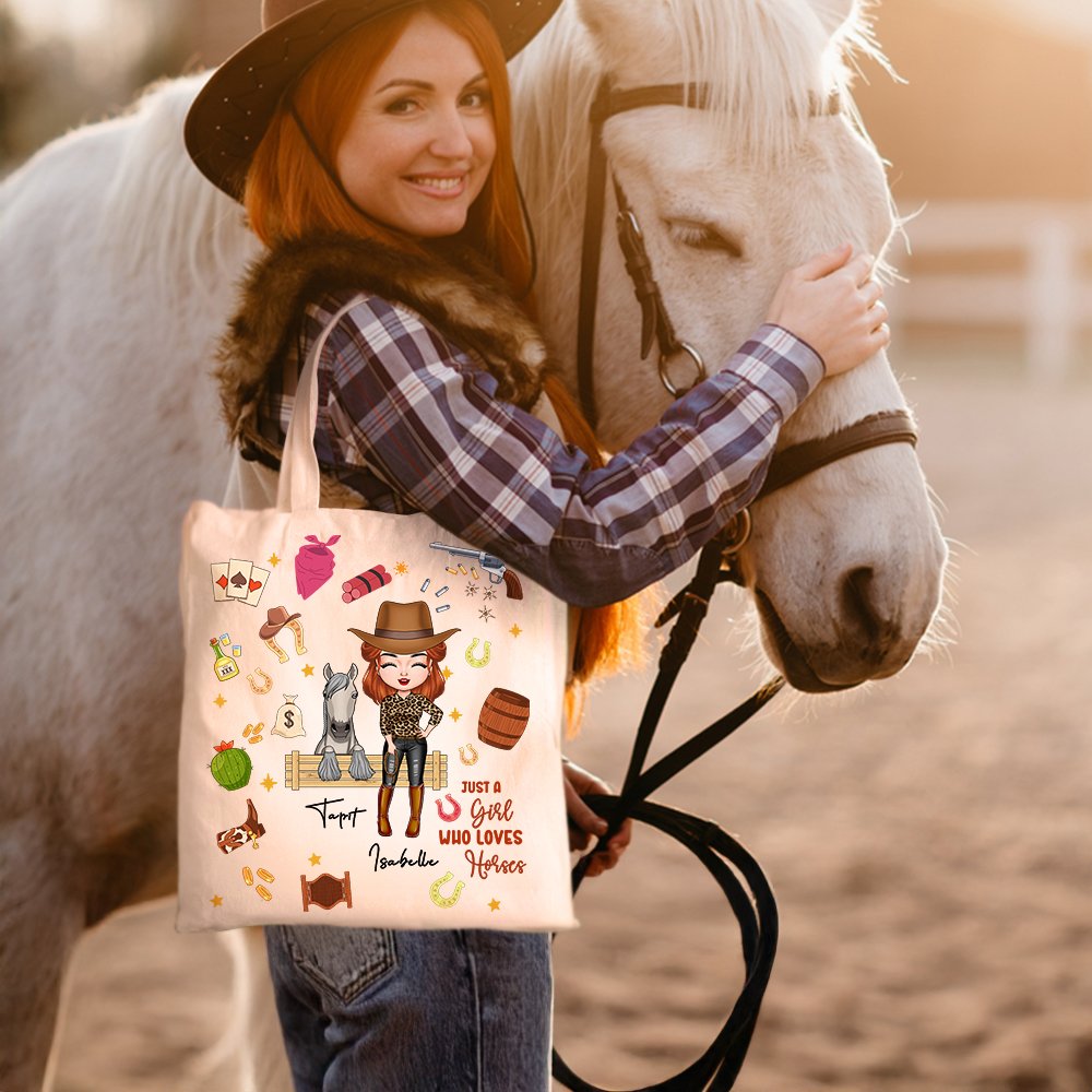 Tämän kangaskassin oikealle puolelle on painettu teksti "just a girl who loves horses", joka kuvaa tytön ja hänen rakkaan hevosensa välistä hiljaista yhteisymmärrystä ja kumppanuutta. Kuva on elävä ja vilkas, värit ovat pehmeät, ja se on täynnä luontoa ja vapautta. Se tukee myös hevosten ja hahmojen nimien mukauttamista, jotta jokainen käyttäjä voi saada oman hevosaikansa.