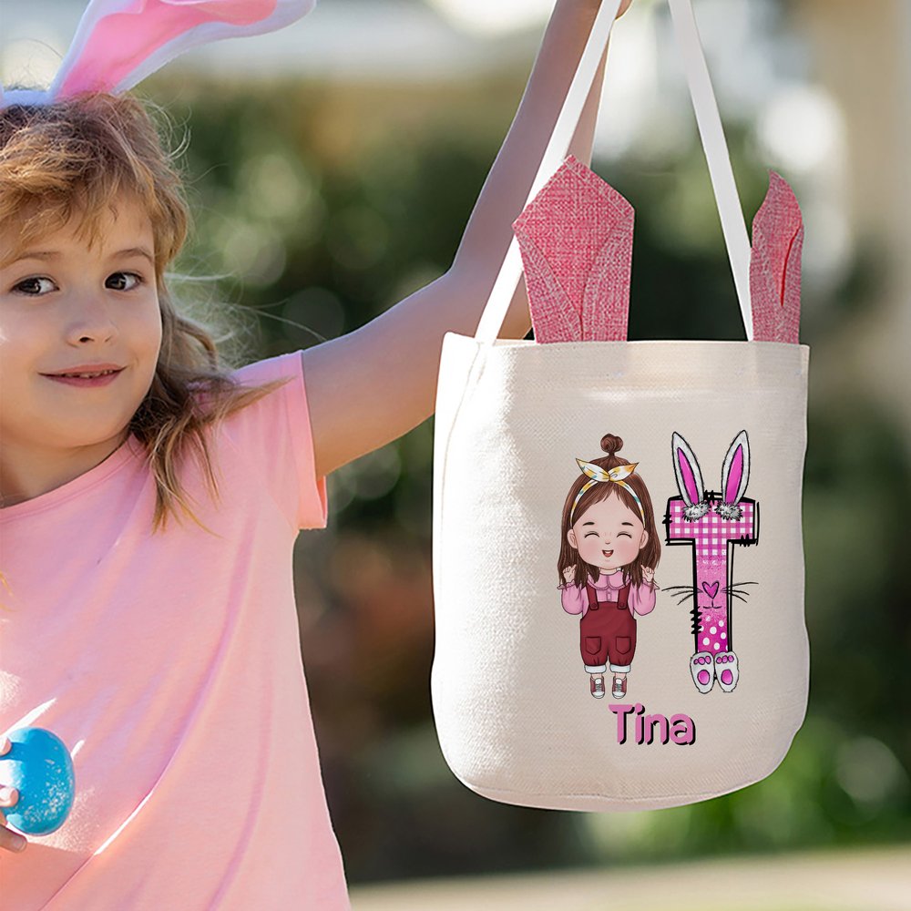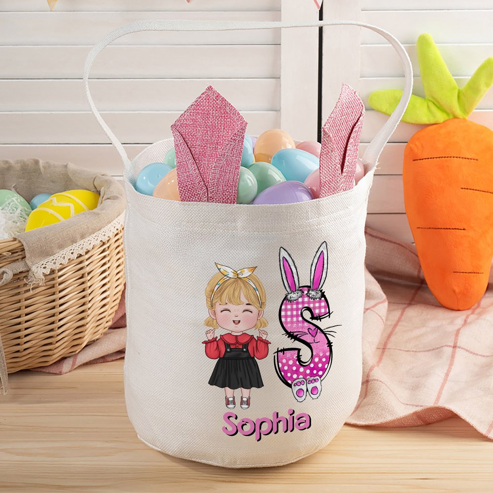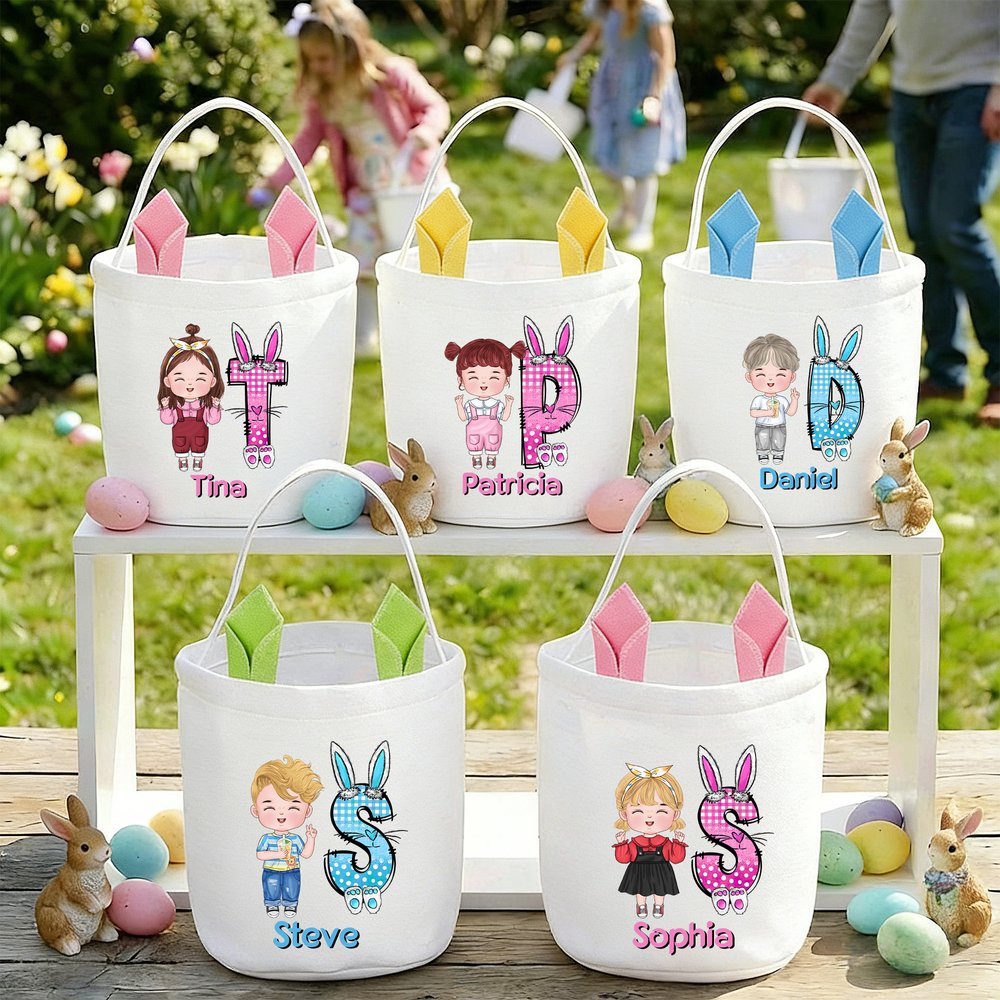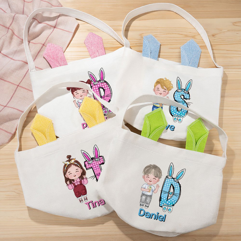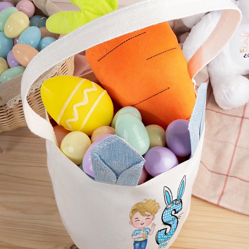 Henkilökohtainen söpö sarjakuva Kid merkki Bunny korvat pääsiäiskori alkuperäisen ja nimi pääsiäismuna metsästys osapuoli suosii syntymäpäivälahja pojille tytöille lahjaksi