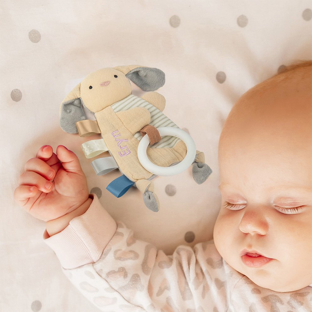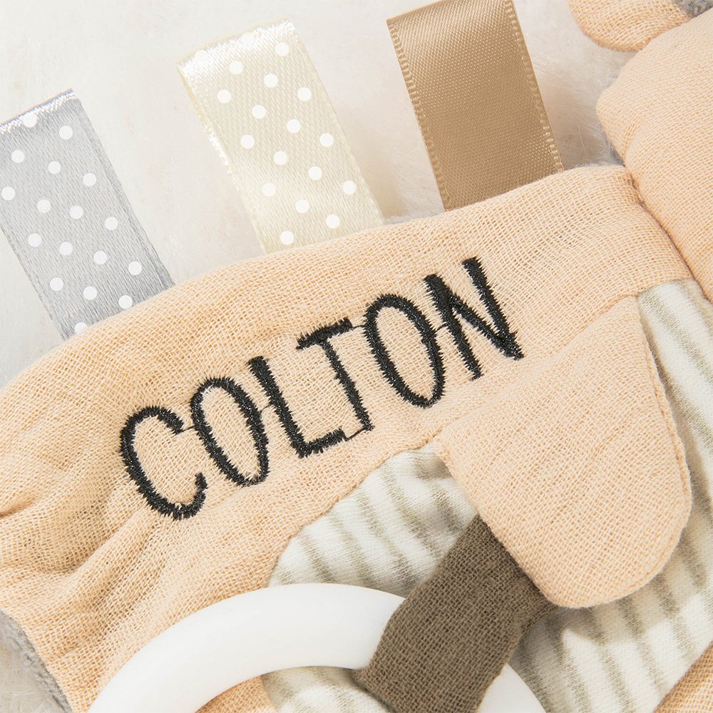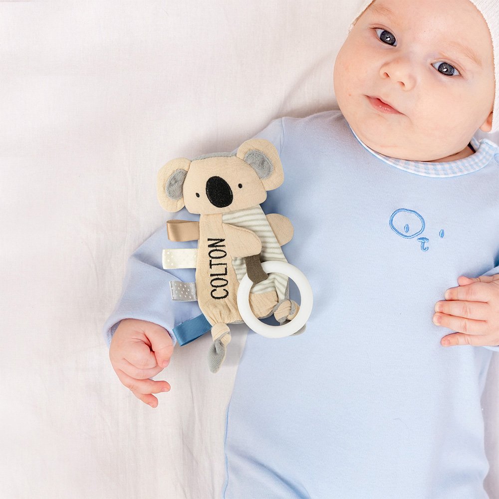 Pehmeästä puuvillasta ja langasta valmistetut turvapeitot ovat sileitä ja täydellisiä vauvan herkälle iholle. Ainutlaatuisen ryppyisen muotoilun ansiosta ne tarjoavat vauvallesi runsaan kosketuskokemuksen, joka auttaa stimuloimaan vauvan aistien kehitystä, ja silmukoitu valkoinen silikoninen purukumi hieroo ja rauhoittaa kipeää ikeniä.