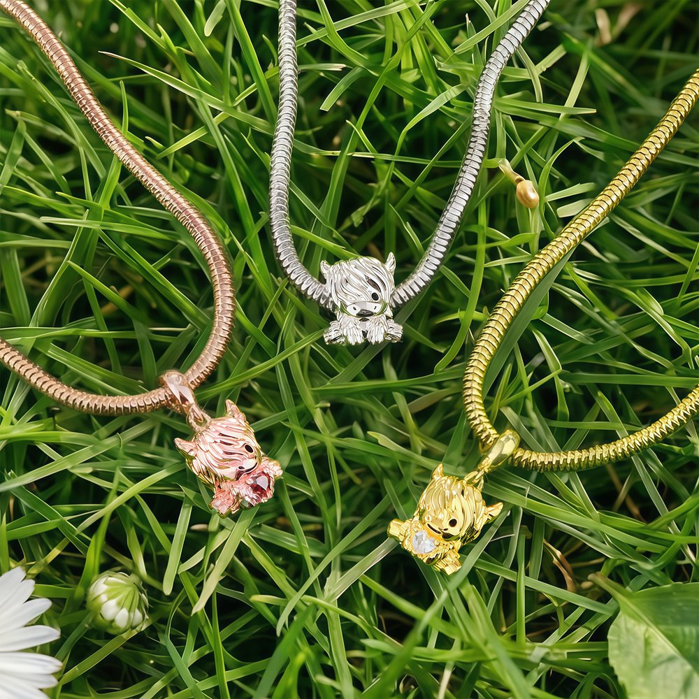 Hienovarainen, mutta huomiota herättävä lisä päivittäisiin asuihin, herkkä ja omituinen Highland-lehmä sopii saumattomasti yhteen minimalistisen käärmeketjun kanssa monipuolista muotoilua varten. Olipa kyse sitten työstä, treffeistä tai rennoista tilaisuuksista, se tuo raikkaan, maaseudusta inspiroituneen aksentin.