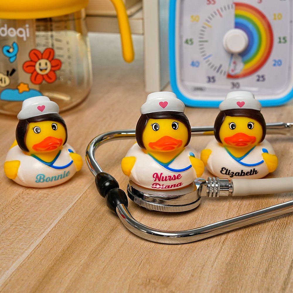 Tämä henkilökohtainen kumiankka on erinomainen syntymäpäivä- tai valmistumislahja sekä sairaanhoitajille että valmistuneille sairaanhoitajille. Juhli heidän kovaa työtään ja omistautumistaan ainutlaatuisella muistoesineellä, joka antaa tunnustusta heidän saavutuksistaan ja intohimostaan ammattiinsa.