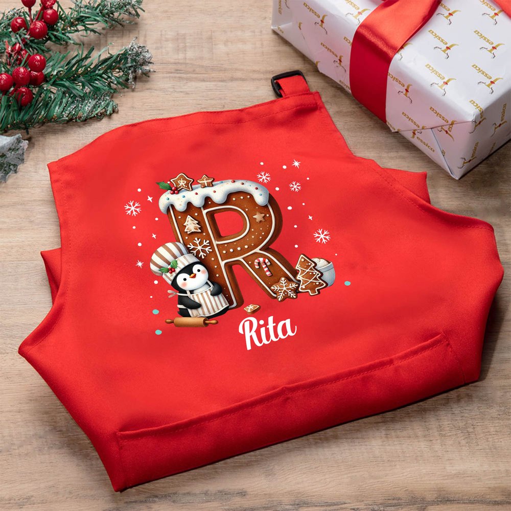 Tämän mallin ytimessä ovat jouluaiheiset sarjakuvakeksikirjaimet ja pingviinikuviot sekä muokattava nimi, joka tuo kokonaisuuteen lämpimän ja leikkisän joulutunnelman. Keksikirjaimet ja pingviinit sopivat täydellisesti juhlateemaan, ja niiden värit ovat kirkkaat ja eloisat. Nimen personointi tekee esiliinasta ainutlaatuisen, ja lapset voivat ilmaista omaa tyyliään samalla kun he uppoutuvat joulun iloon – siitä tulee koko perheen yhteisten hetkien hurmaava kohokohta.