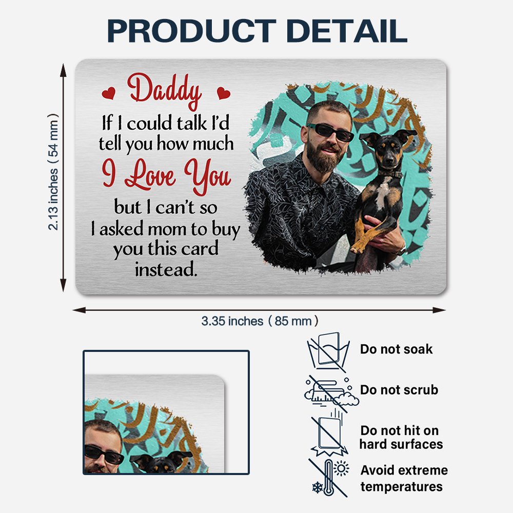 This wallet card makes an ideal gift for Father’s Day, birthdays, or any day for dog dads, cat dads, husbands, or any pet enthusiast. It’s a meaningful way for pets to 'express' their affection and appreciation and celebrates the special bond between pets and their owners.