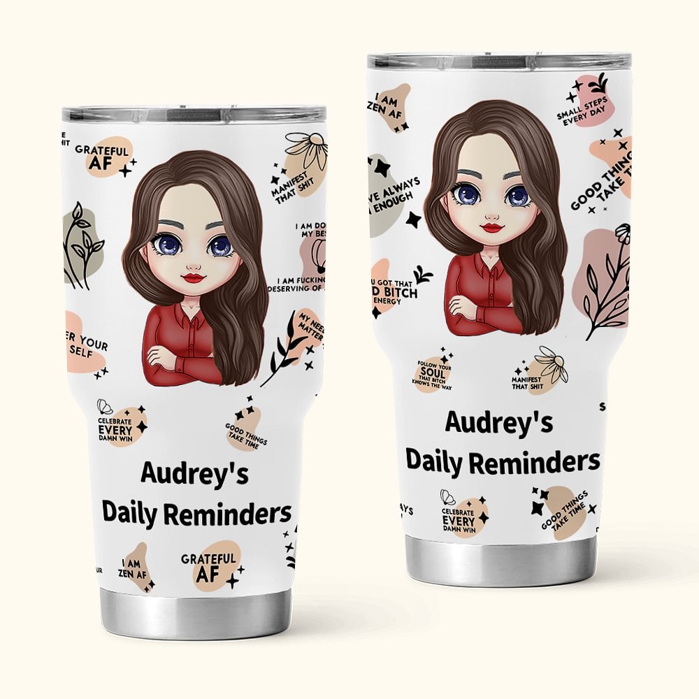 This is a 30oz tumbler designed with self-affirmation quotes, and you can customize the woman's appearance and name to form a personal and unique tumbler. Start your day with the uplifting and self-encourage quotes printed on this tumbler. Each time you take a sip, you'll be reminded of your strength and potential. It reminds you to stay positive and keep pushing forward, even when faced with challenges.