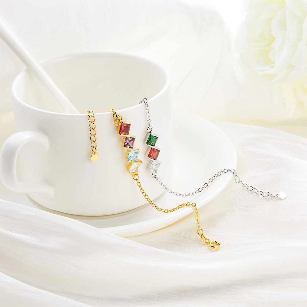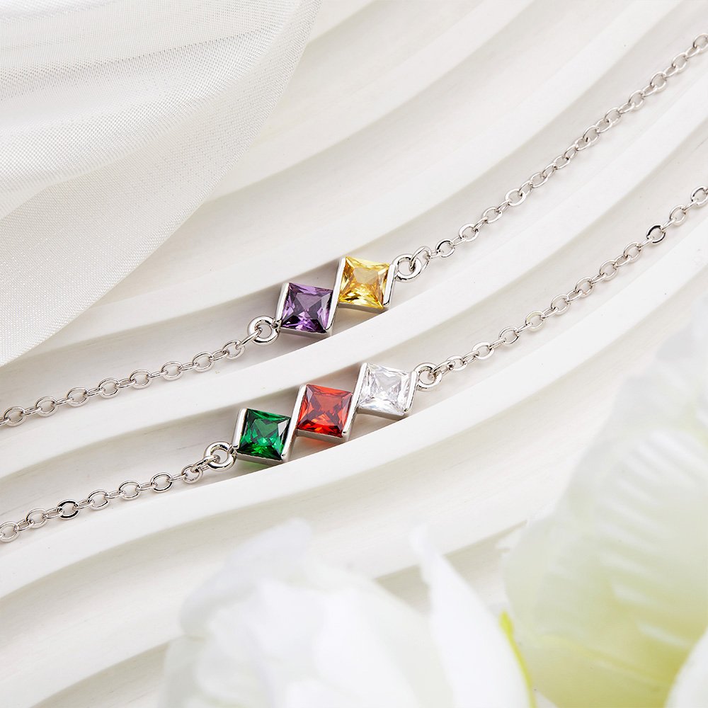 Our birthstone bracelet is a beautiful piece of jewelry that showcases elegance and sentimental value. It allows you to personalize it with 2-6 birthstones that represent family members, making it a beautiful tribute to your mother and grandmother.
