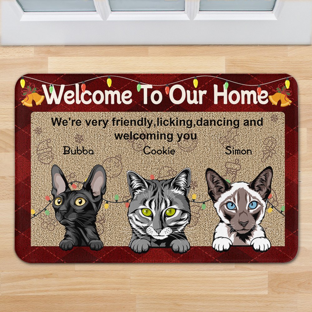 The message "Welcome To Our Home" is beautifully printed on the floor mat, means that pets are human family members too.
